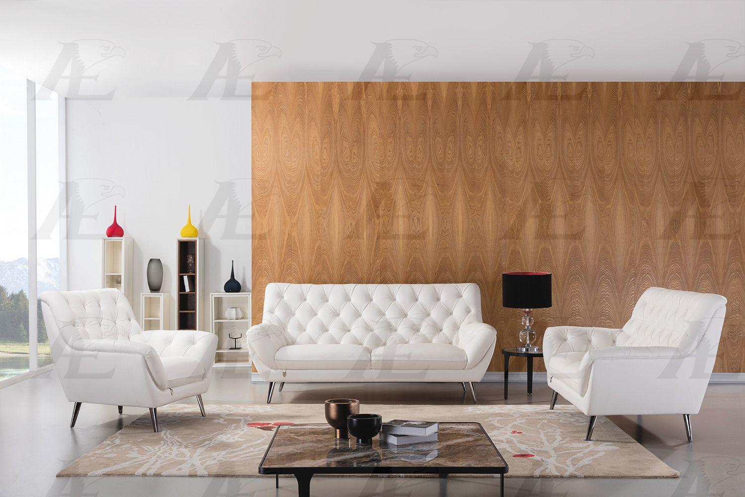 Modern White Italian Leather Sofa Set 3Pcs American Eagle EK8003-W