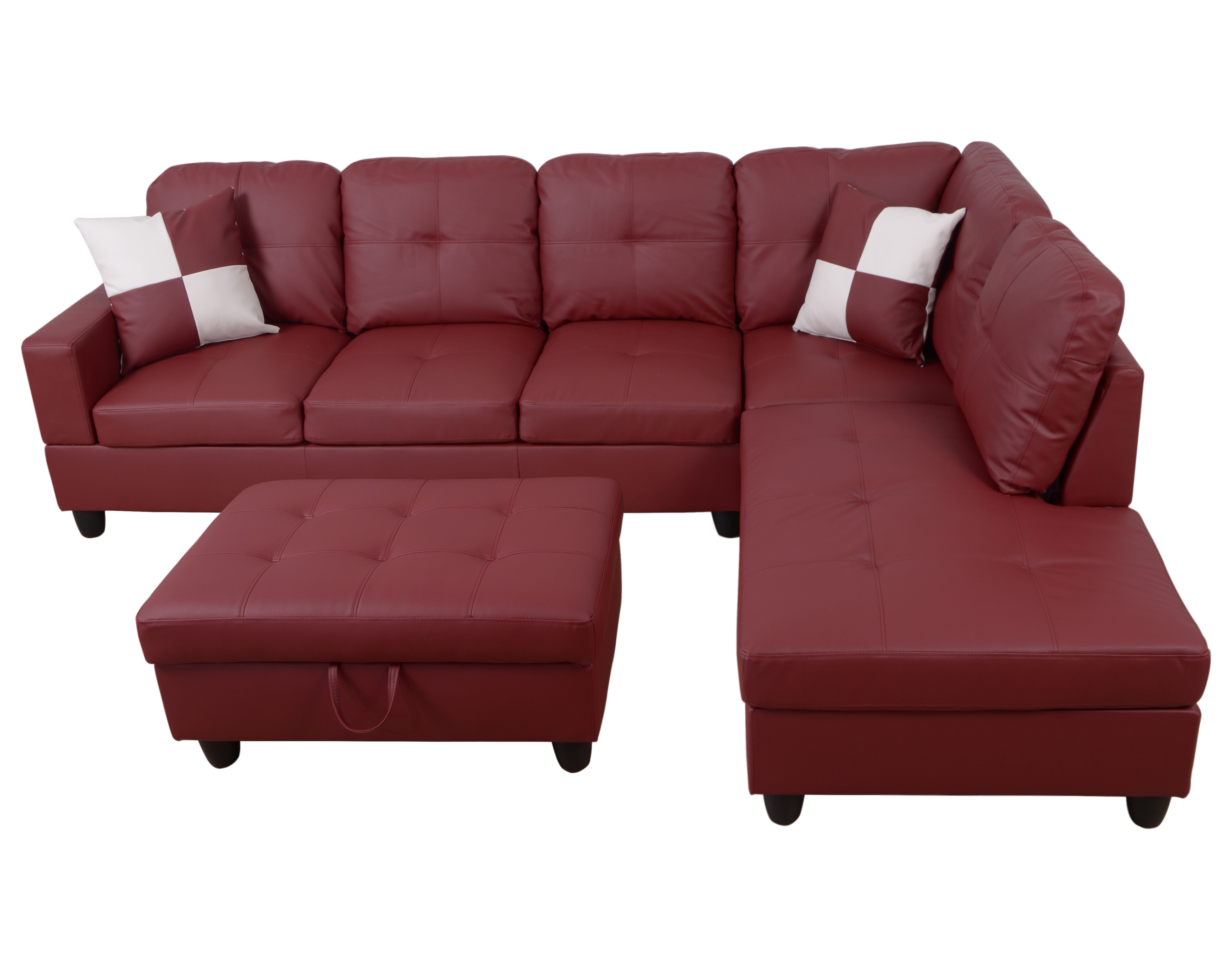 Ponliving Furniture Hermann Right Chaise Sectional Sofa with Storage Ottoman, Cherry Red, MicroFiber Hermann Right Chaise Sectional Sofa with Storage Ottoman, Cherry Red, MicroFiber