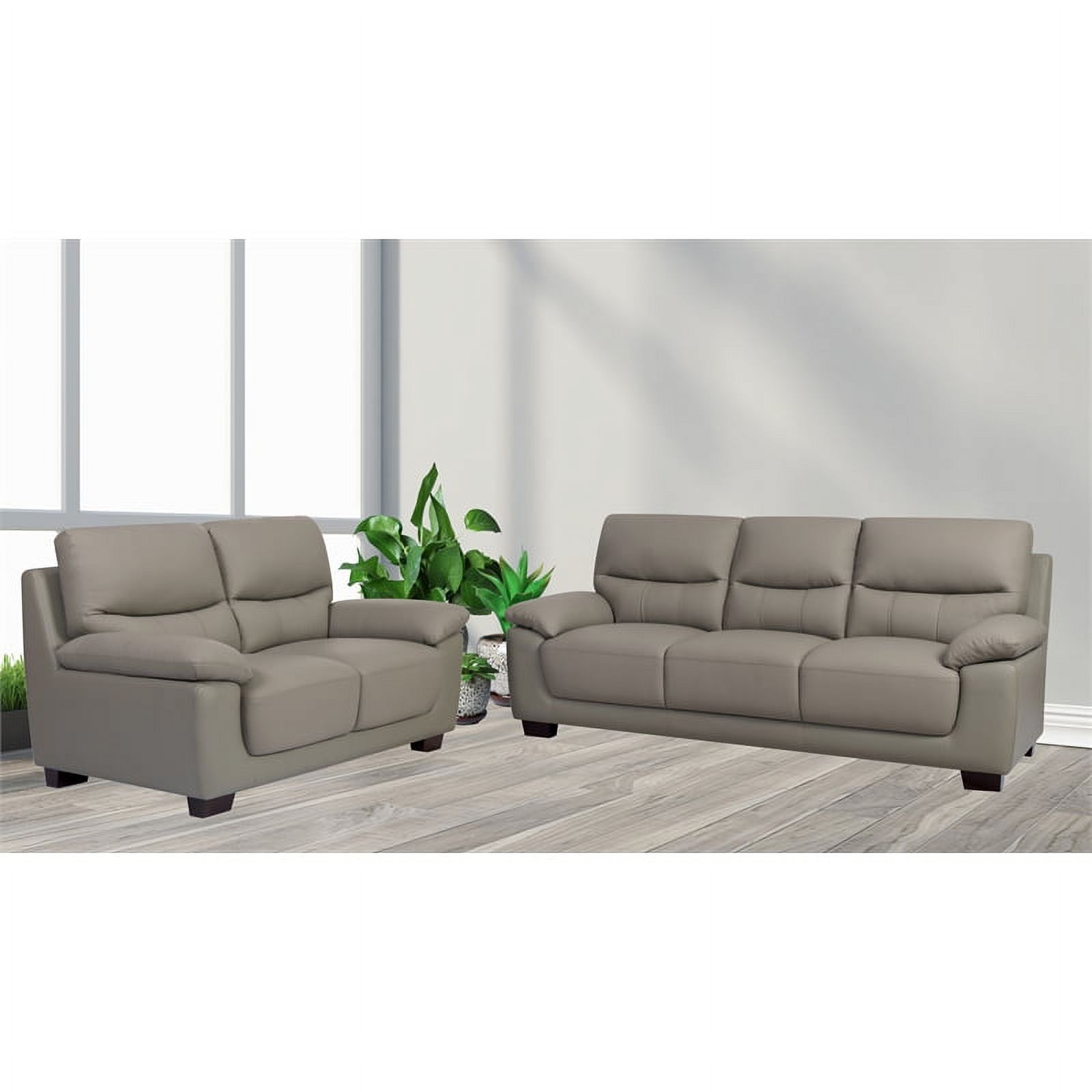 New Spec Renzo Leather Sofa and Loveseat Set in Gray