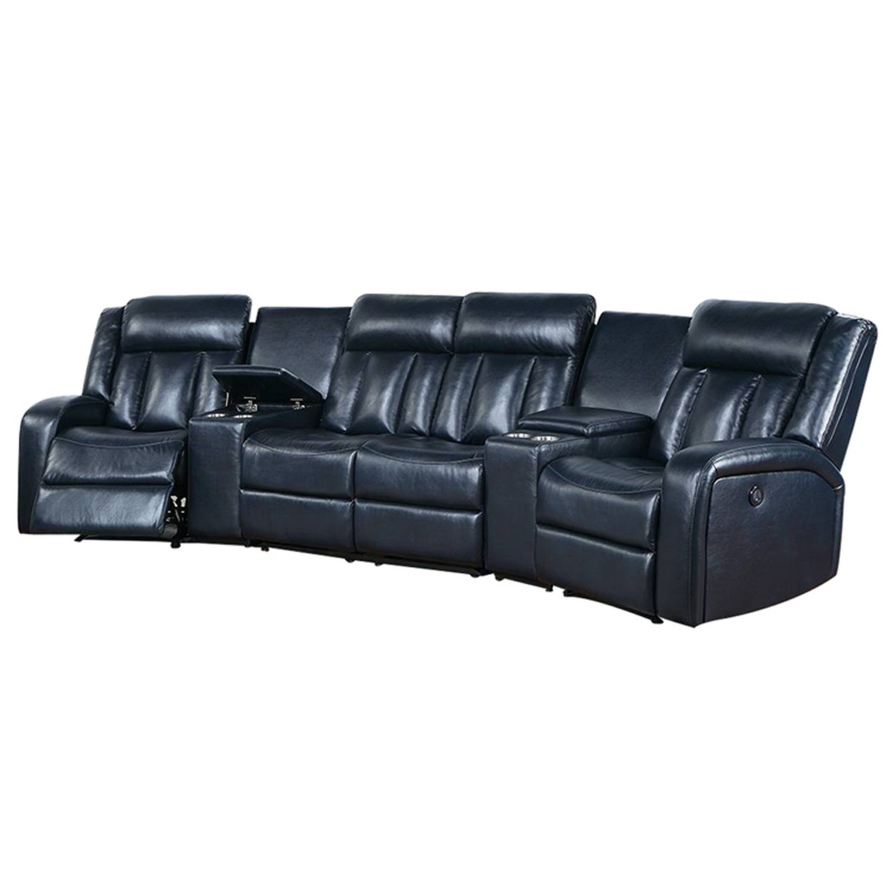 Max 5 Piece Power Recliner Sectional Sofa Set, Navy Blue Vegan Faux Leather- Saltoro Sherpi