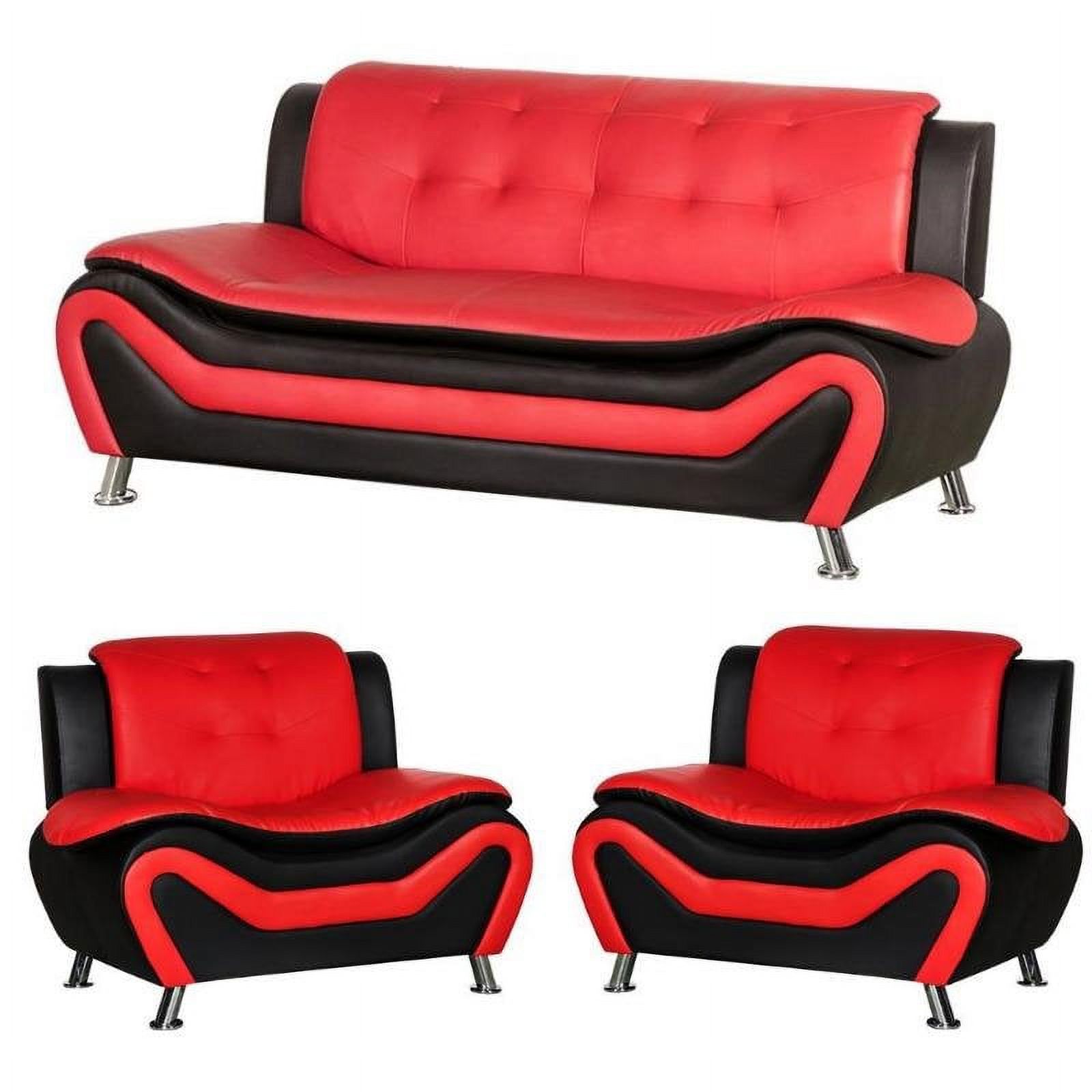 3 Piece Living Room Set with 2 Tone Sofa and Armchairs in Black/Red