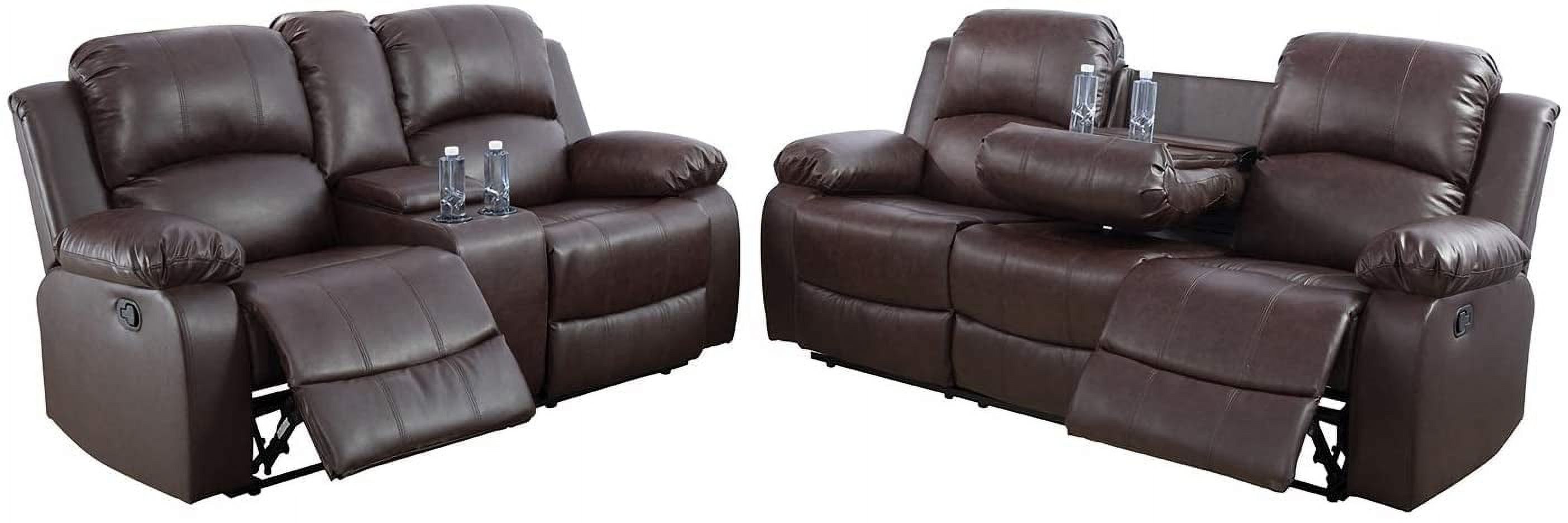 2 Piece Leather Mannual Reclining Living Room Set Brown (Sofa & Loveseat)