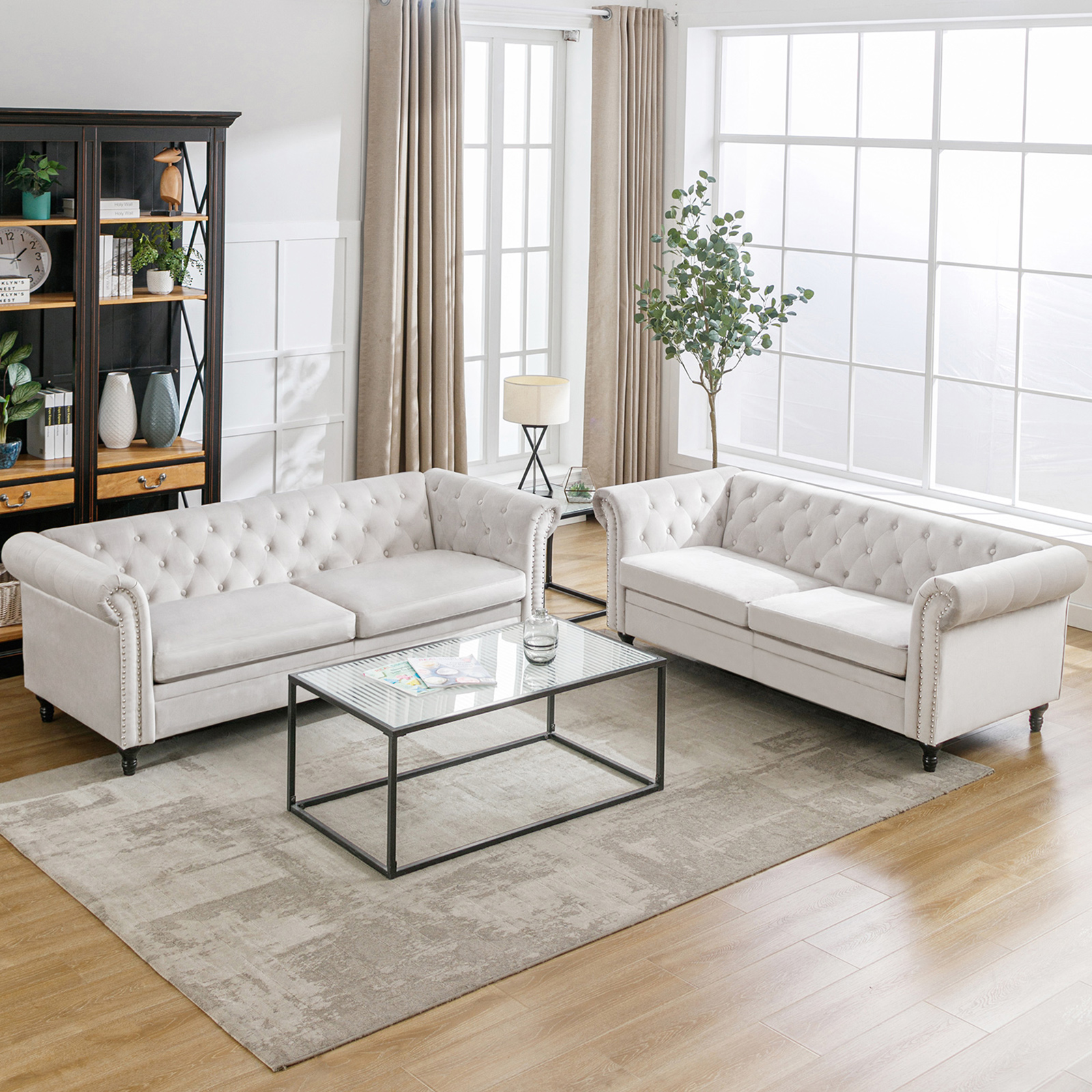Chesterfield Sofa Set - Color: White, Size: Sofa Loveseat