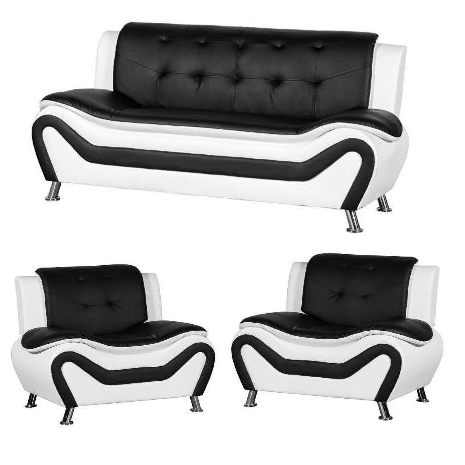 3 Piece Living Room Set with 2 Tone Sofa and Armchairs in Black/White