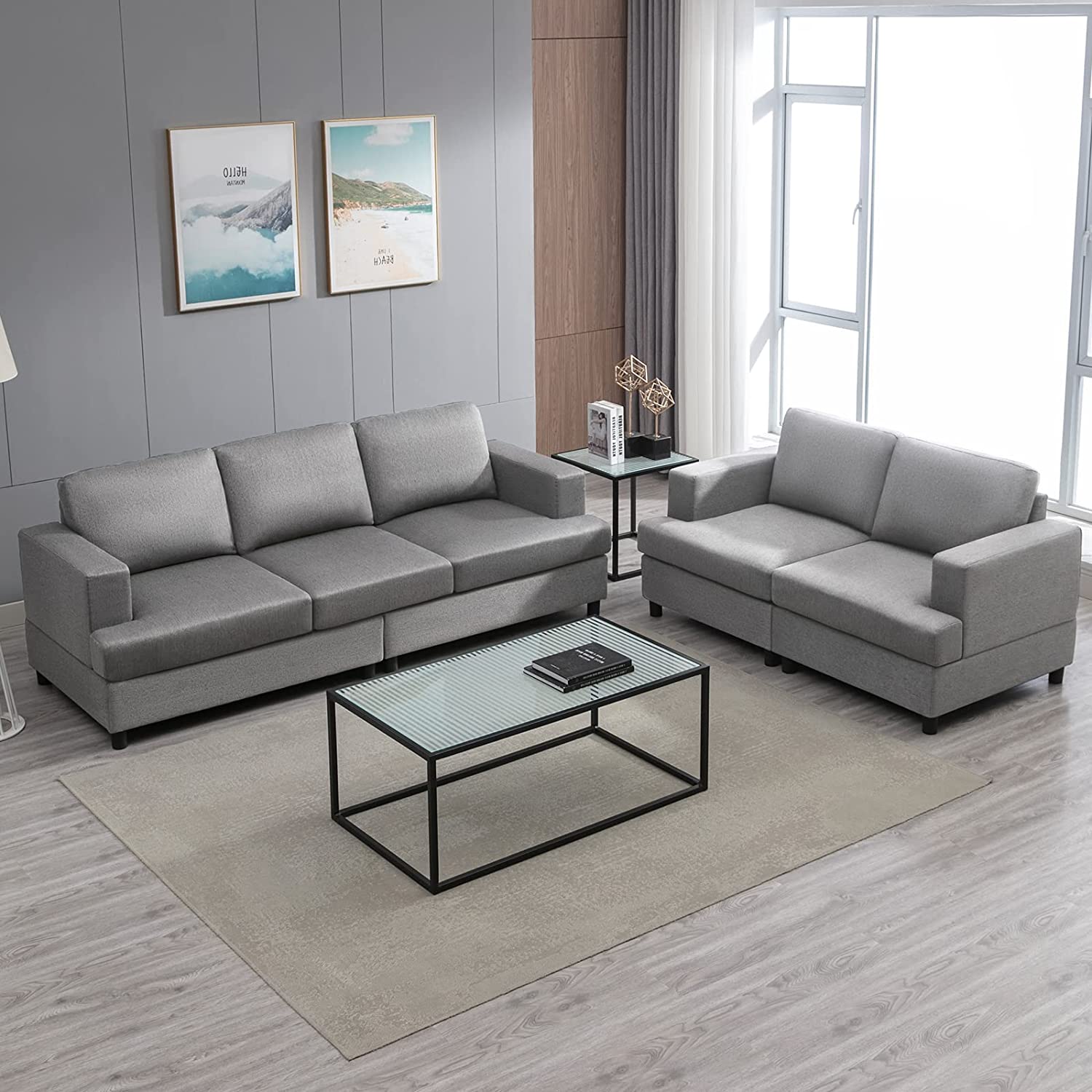 Mjkone 2 Pieces Sectional Sofa Set for Living Room,2 Pieces Living Room Furniture Set,3 Seat Convertible Couch and Loveseat for Office/Apartment/Bedroom,Light Grey