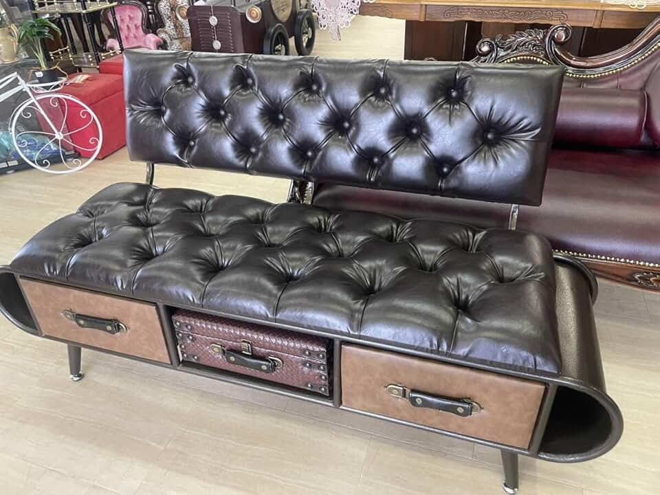 Trunk Couch Sofa Industrial Antique Can Vintage Trunk Two Seater 2P Bench Backrest Storage