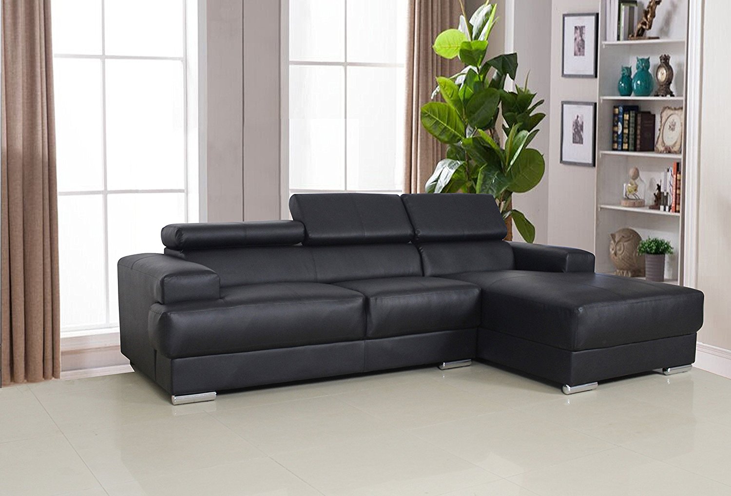 Gabriel Contemporary Bonded Leather 2-Pc Right Facing Sectional Sofa Set, Black,S0063