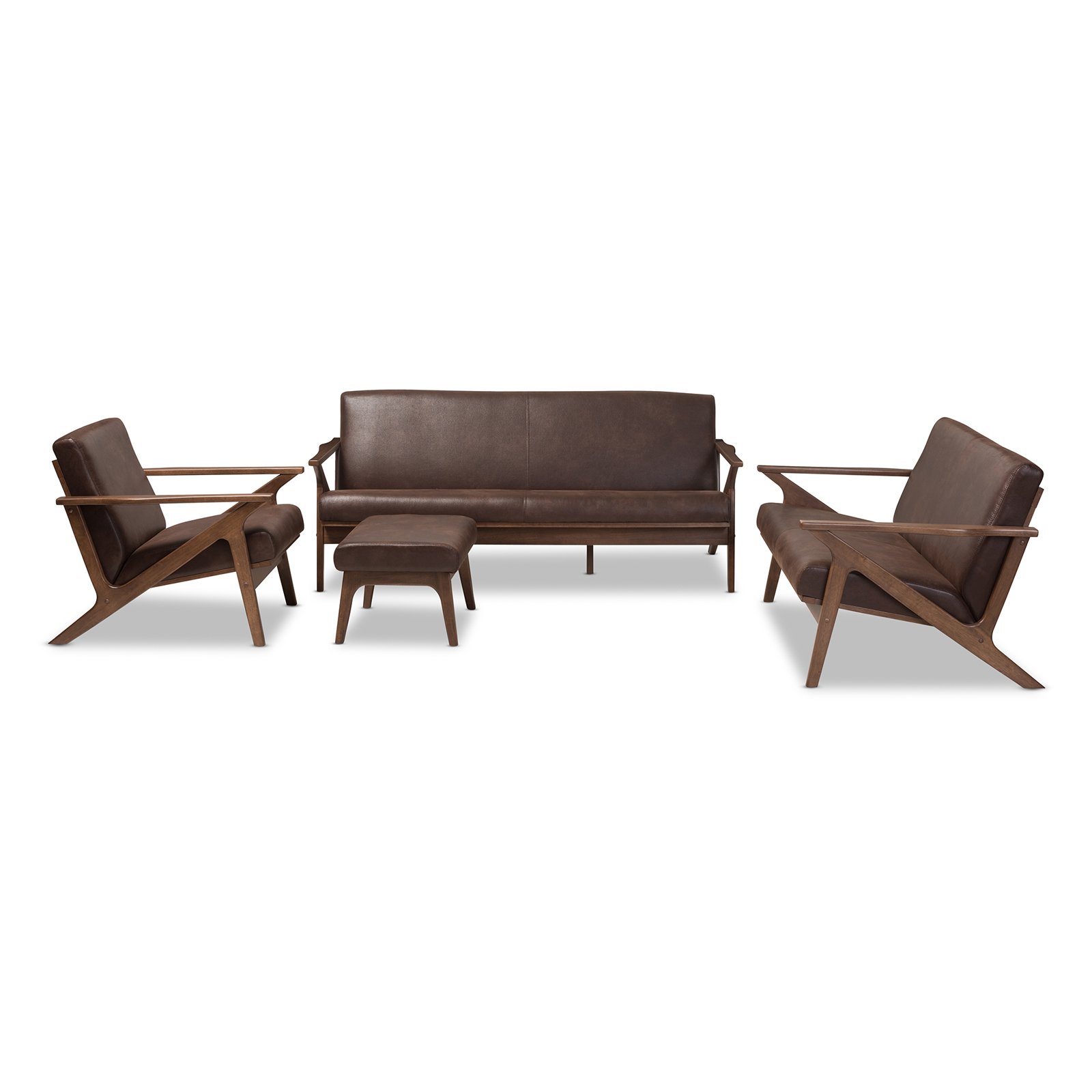 Baxton Studio Bianca Walnut Wood Dark Brown Distressed Faux Leather Livingroom Sofa Set