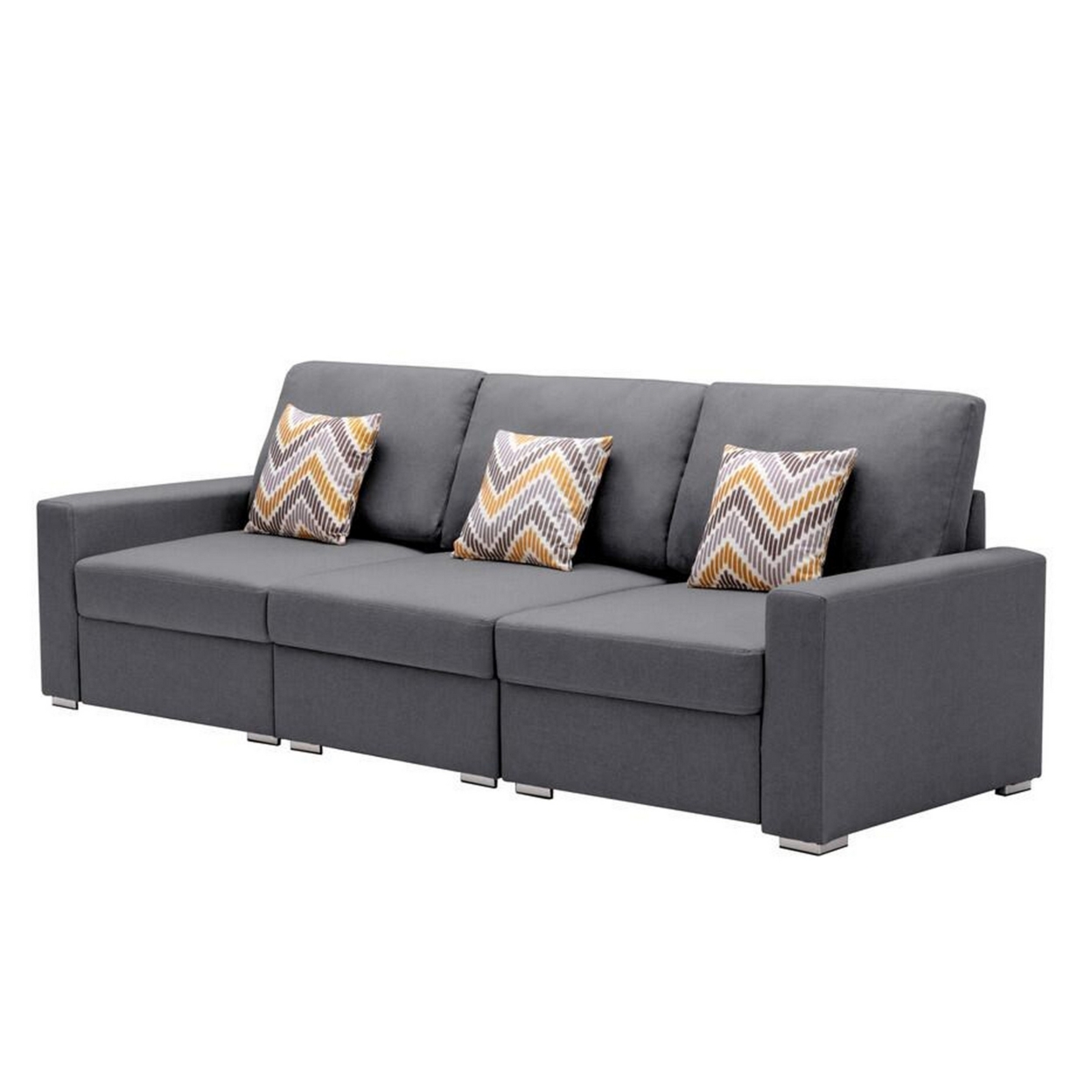 Meg 96 Inch 3 Piece Sofa Set, Modular, 2 Accent Pillows, Soft Gray Fabric - Saltoro Sherpi