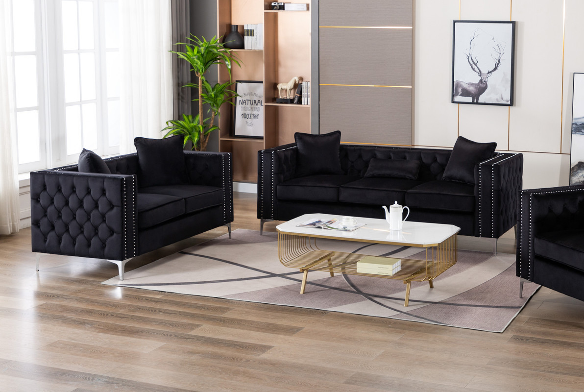 Lilola Home Lorreto Black Velvet Fabric Sofa Loveseat Living Room Set