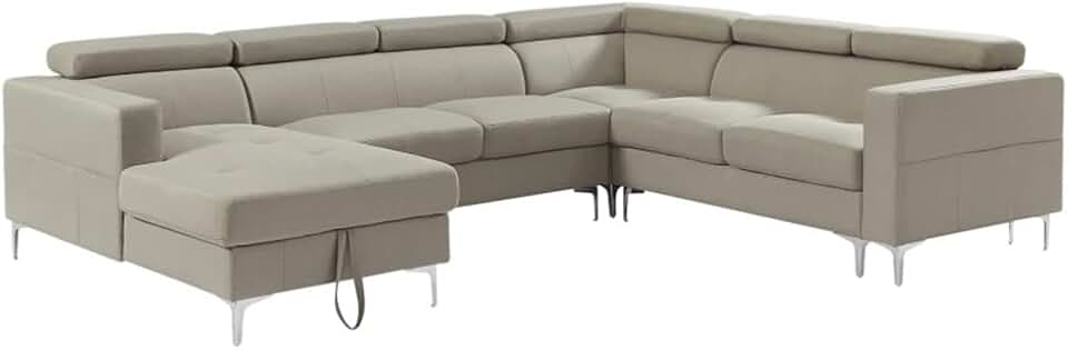120'* 94.5" 3-Piece Sectional Sofa U Shape with Storage Left Chaise Lounge with Head Adjustment Linen Fabric