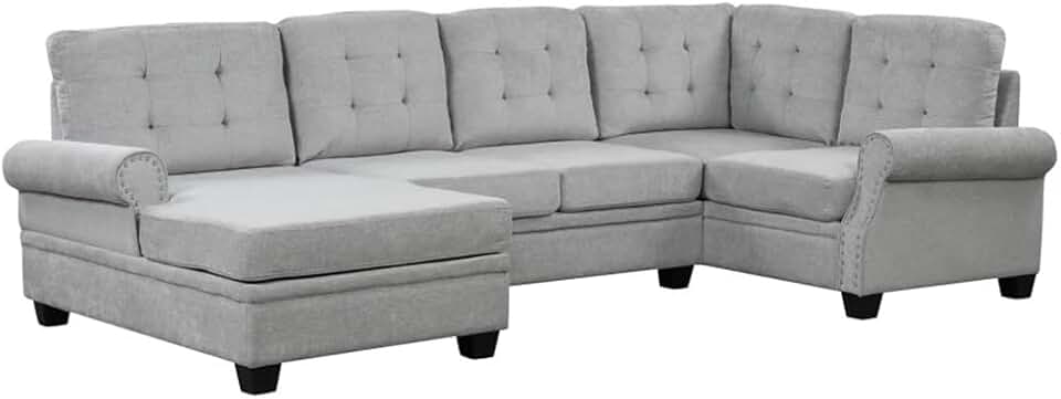120" Sectional Sofa,Upholstered Linen Fabric Sofa,U-Shaped Corner Sectional Sofa, for Living Room, Bedroom,Gray