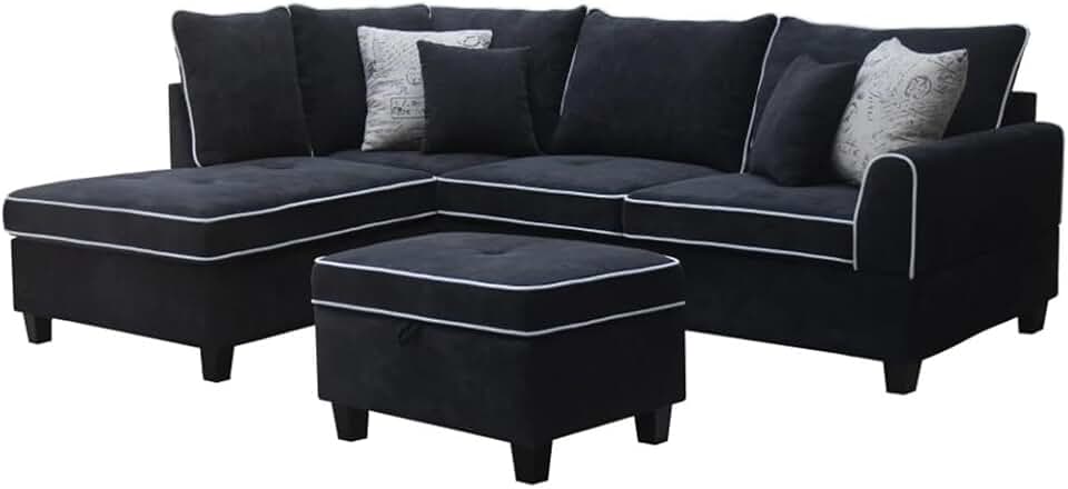 Black Fabric Sectional Sofa with Left-Facing Chaise and Storage Ottoman