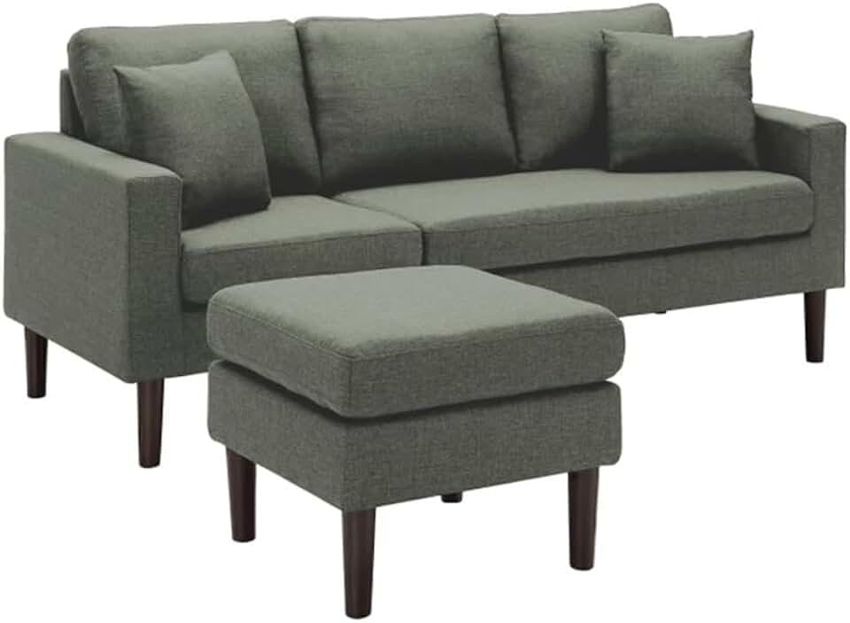 Living Room Furniture L Shape Sofa with Ottoman in Beige Fabric, Suitable for Living Rooms, Apartments