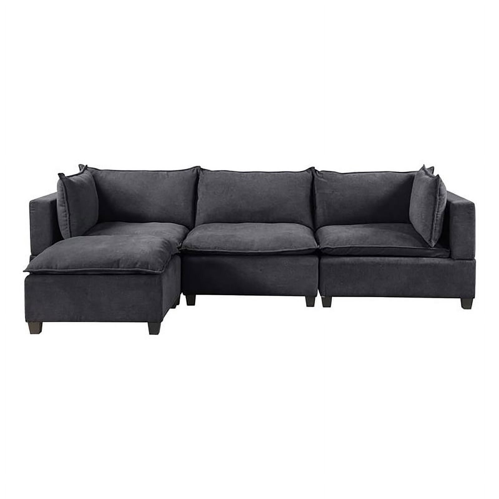 Bowery Hill Modern Fabric Reversible Sectional Sofa Ottoman in Dark Gray