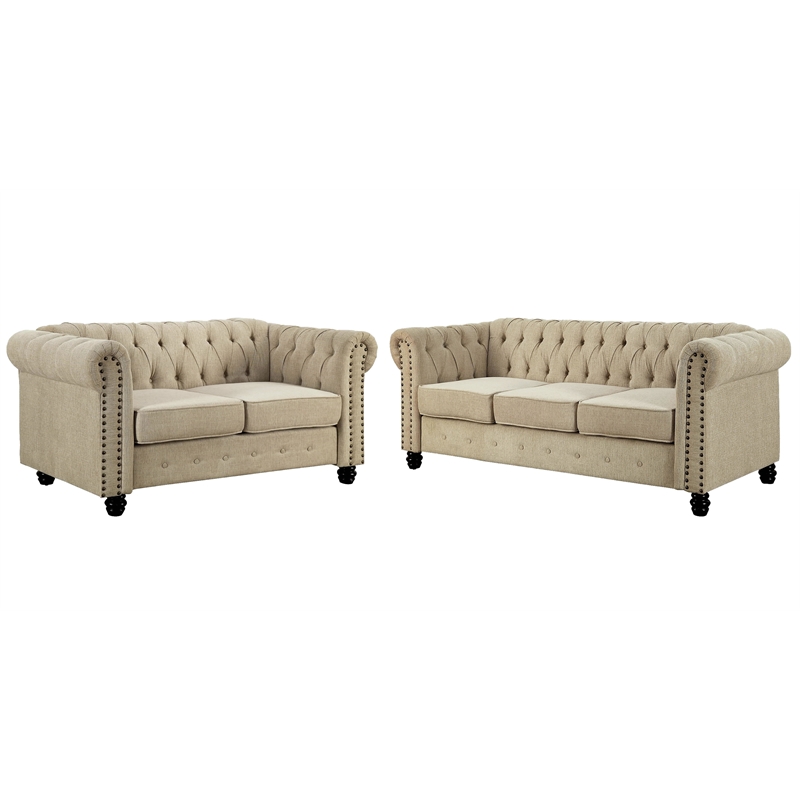 RN Furnishings Linen fabric sofa Loveseat Living room furniture Set -Beige
