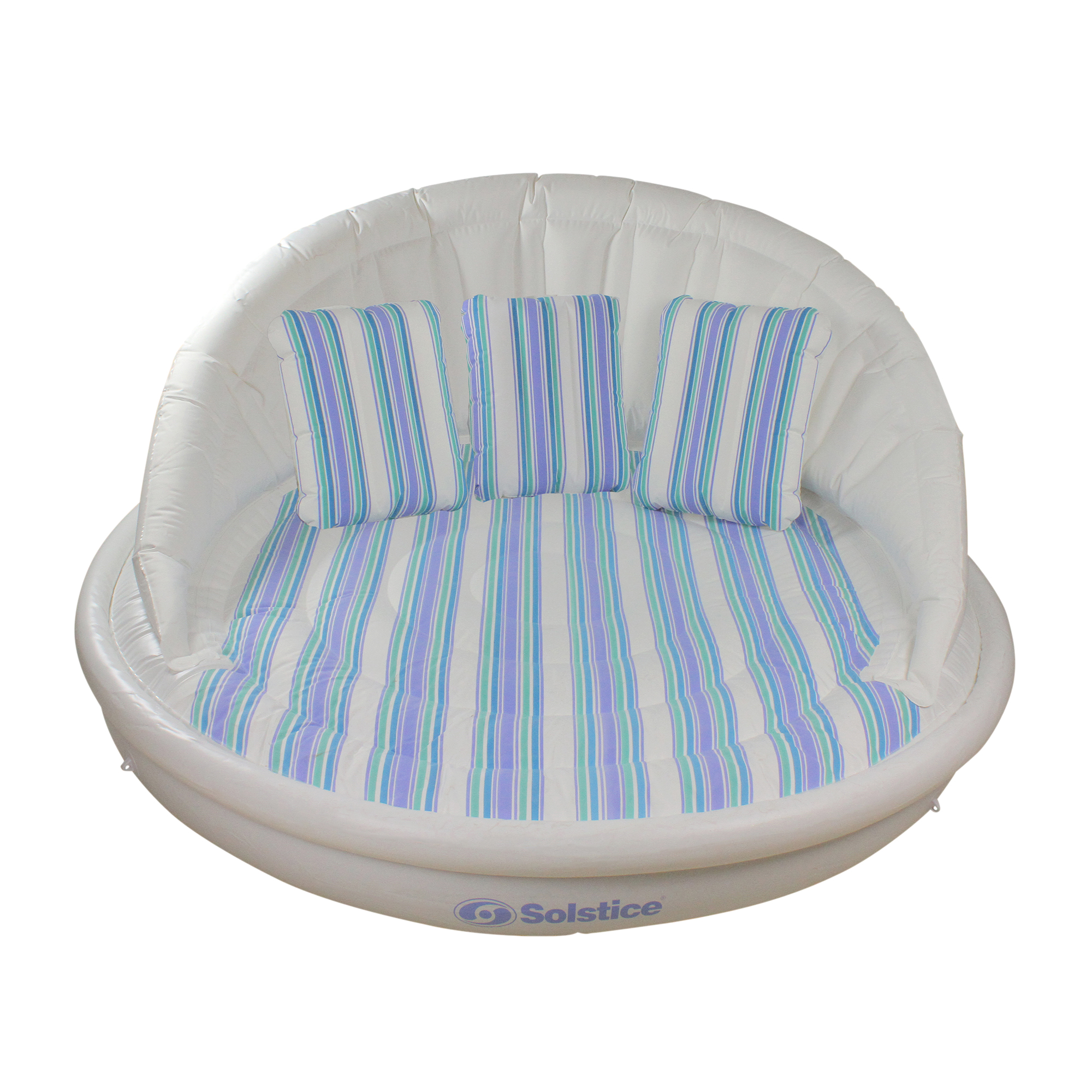 70-Inches Inflatable White and Blue Striped Floating Swimming Pool Sofa Lounge Raft