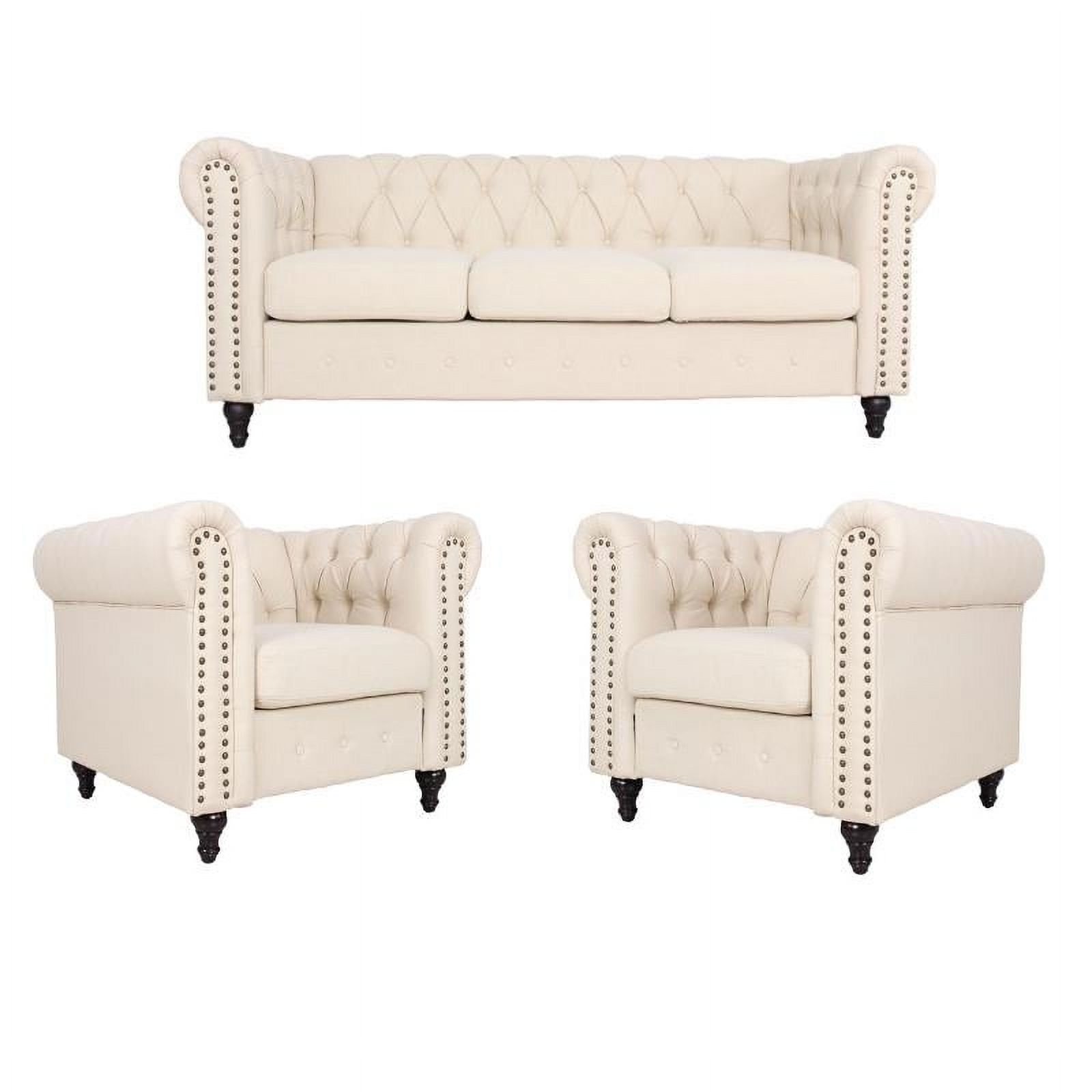 Home Square 3 Piece Set Living Room Set with Sofa and Two Accent Chairs in Cream