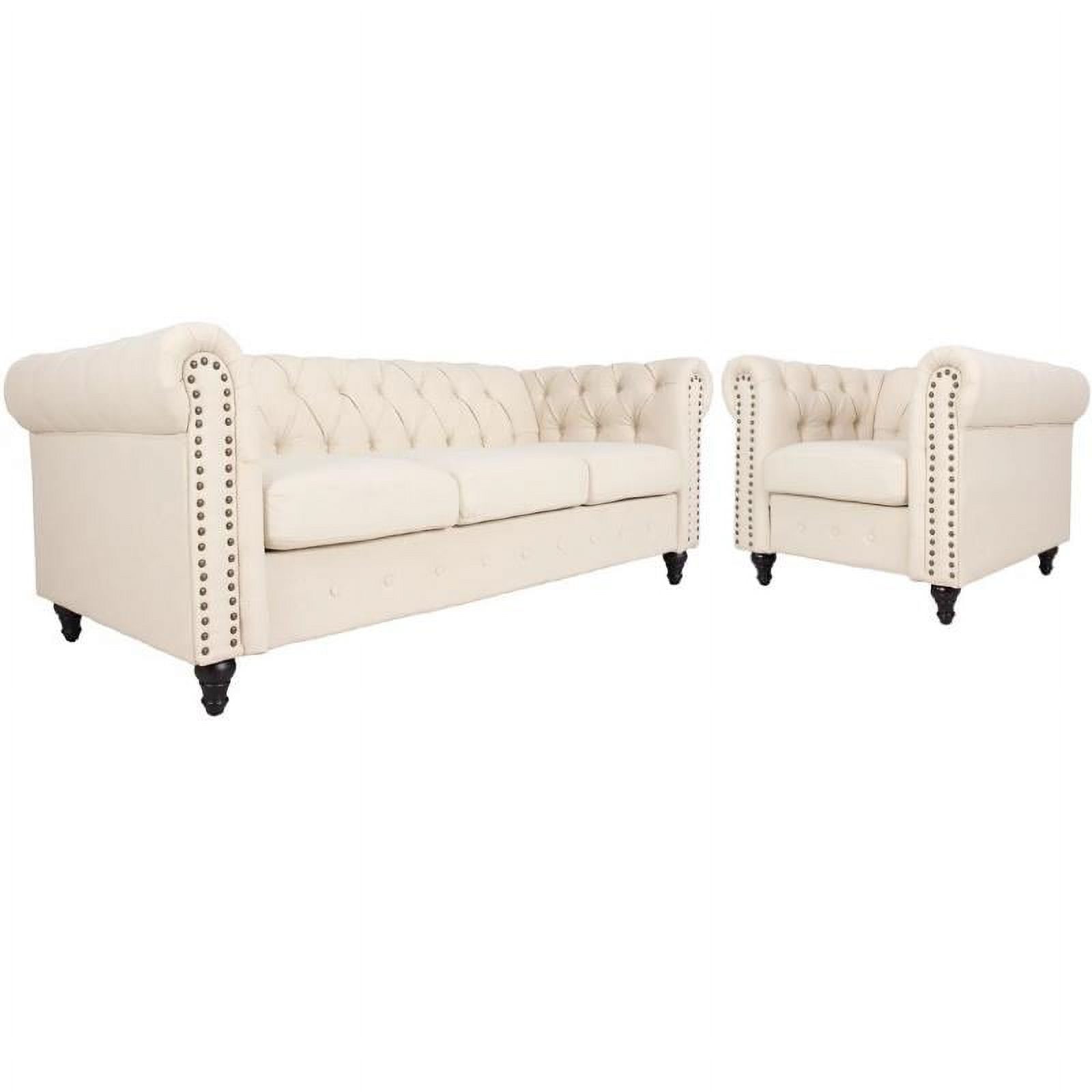 Chesterfield Sofa Set - Color: White, Size: Sofa Loveseat