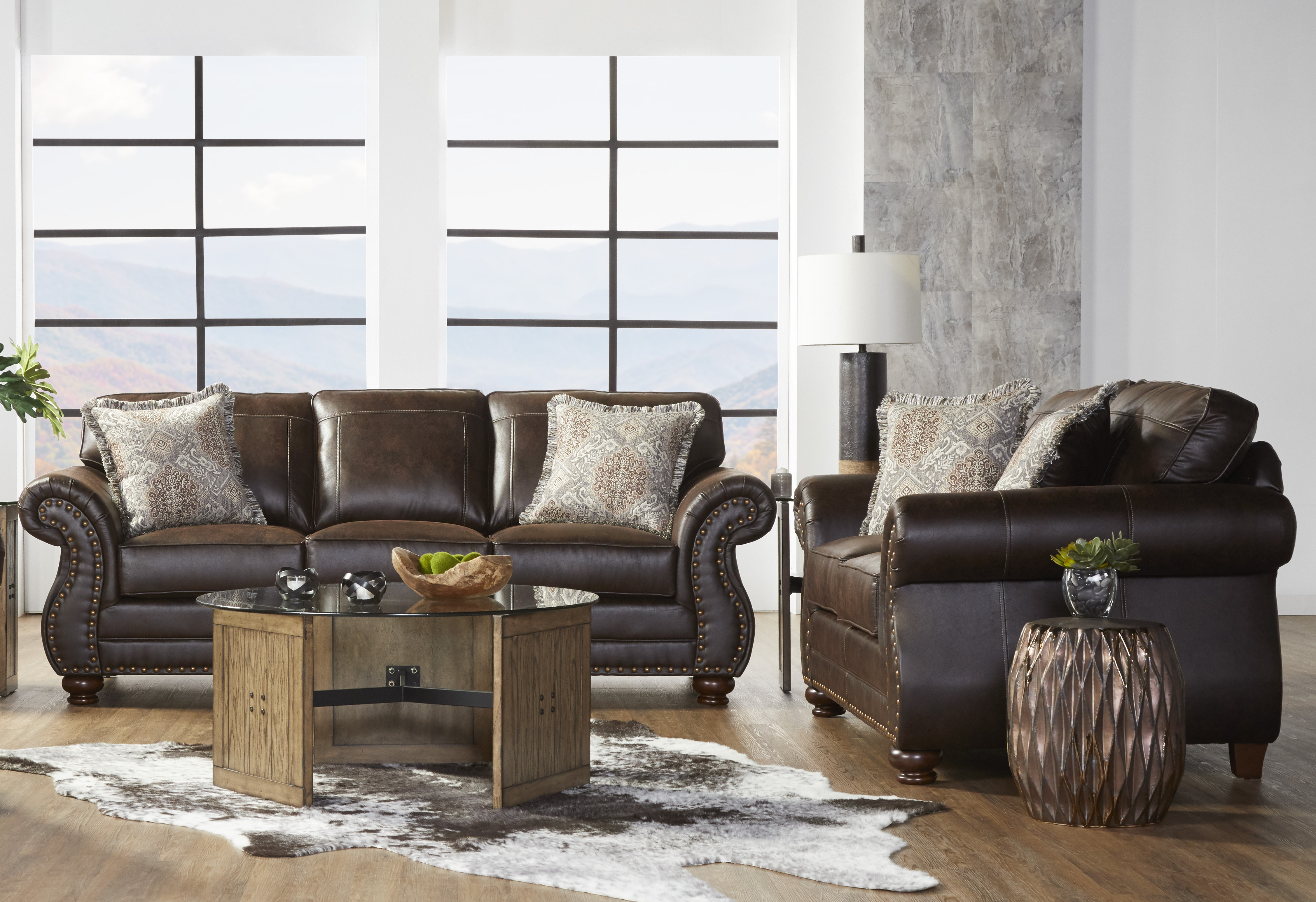 Roundhill Furniture Leinster Nailhead Faux Leather Sofa and Loveseat Set, Espresso