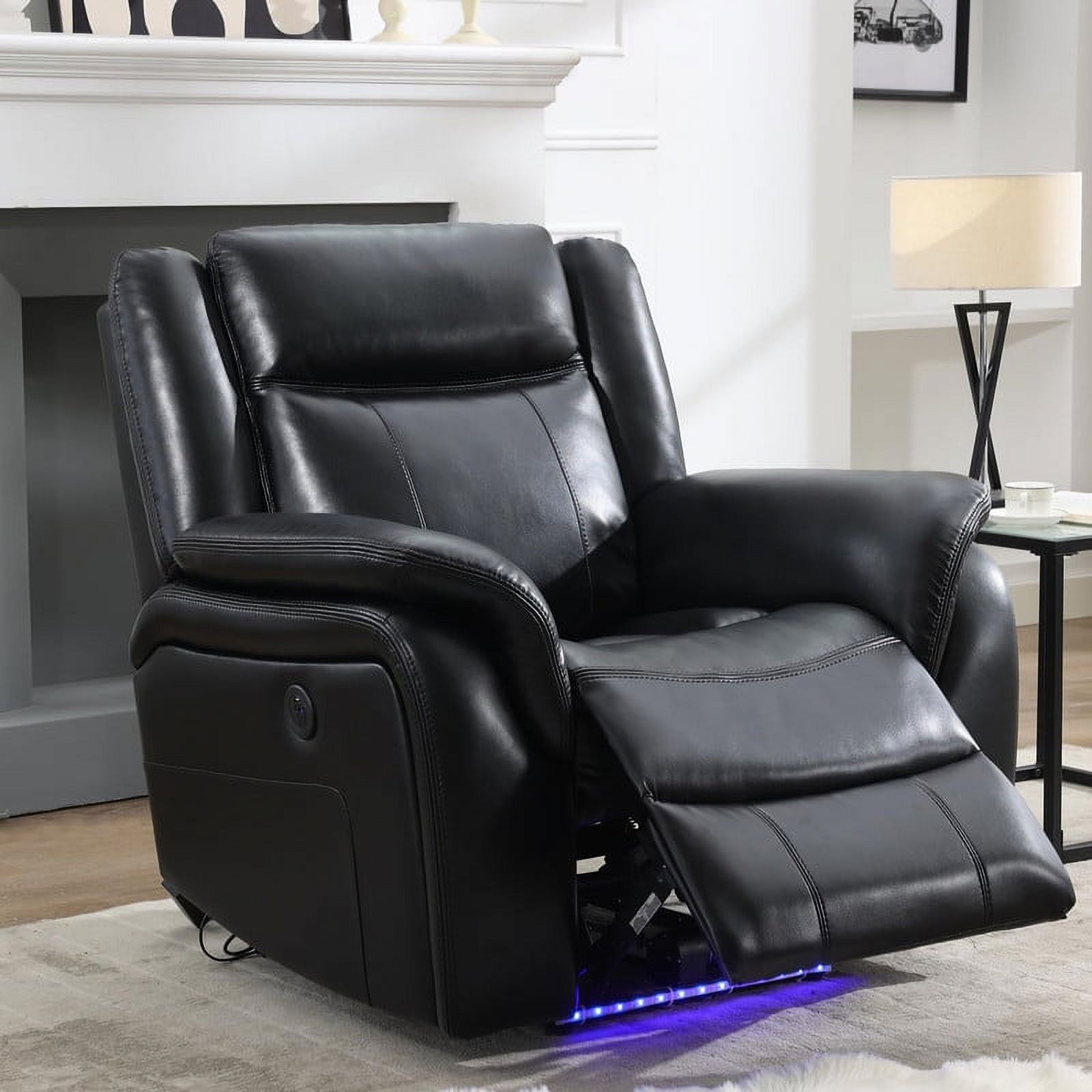 Comfort Stretch Power Recliner Chair for Adults,Electric Single Seater Black Faux Leather Reclining Sofa for Living Room Home Theater Seating with Ambient Lighting,USB Port