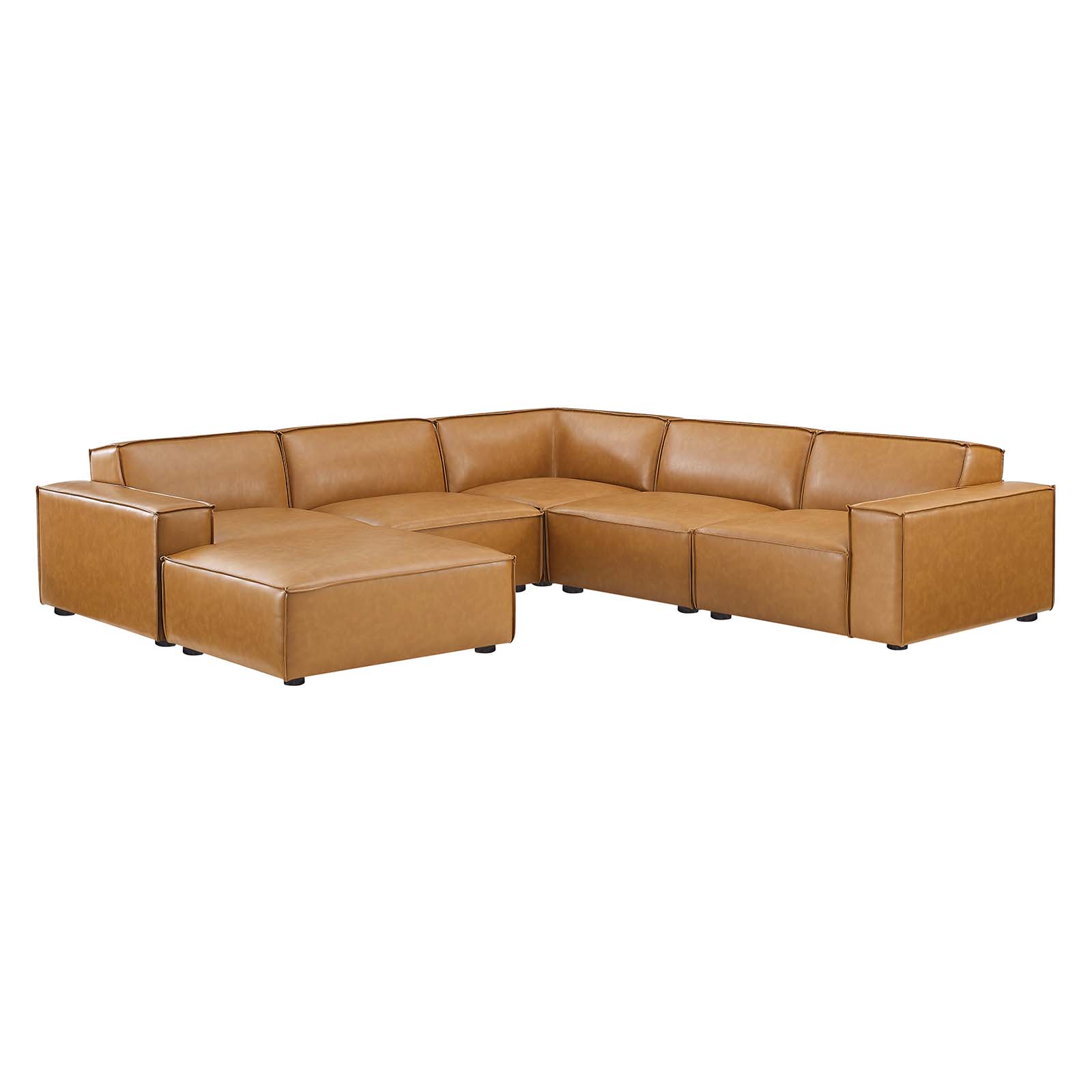 Sectional Sofa Set, Faux Vegan Leather, Tan, Modern Contemporary Urban Design, Living Lounge Room Hotel Lobby Hospitality