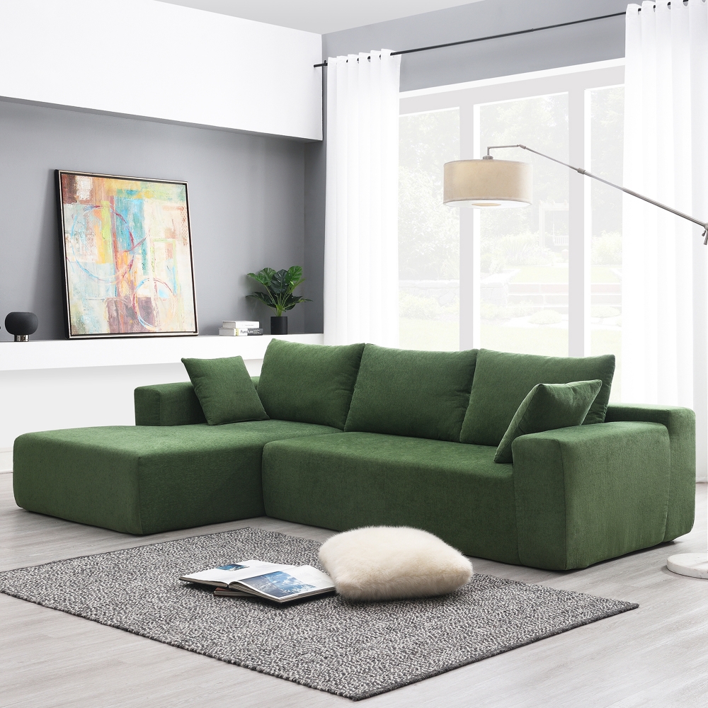 109*68" Modular Sectional Living Room Sofa Set, Upholstered L-Shape Sleeper Sofa for Living Room, Bedroom, Salon, Modern Minimalist Style Velvet 4-Seat Sofa Couch, Free Combination, Green