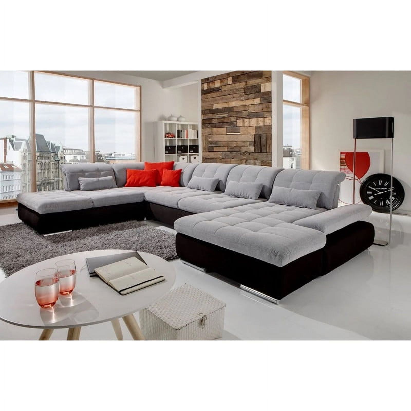 Alpine Modern 2-Tone U-Shape Fabric Sectional Sofa in Light Gray, Right Facing Chase
