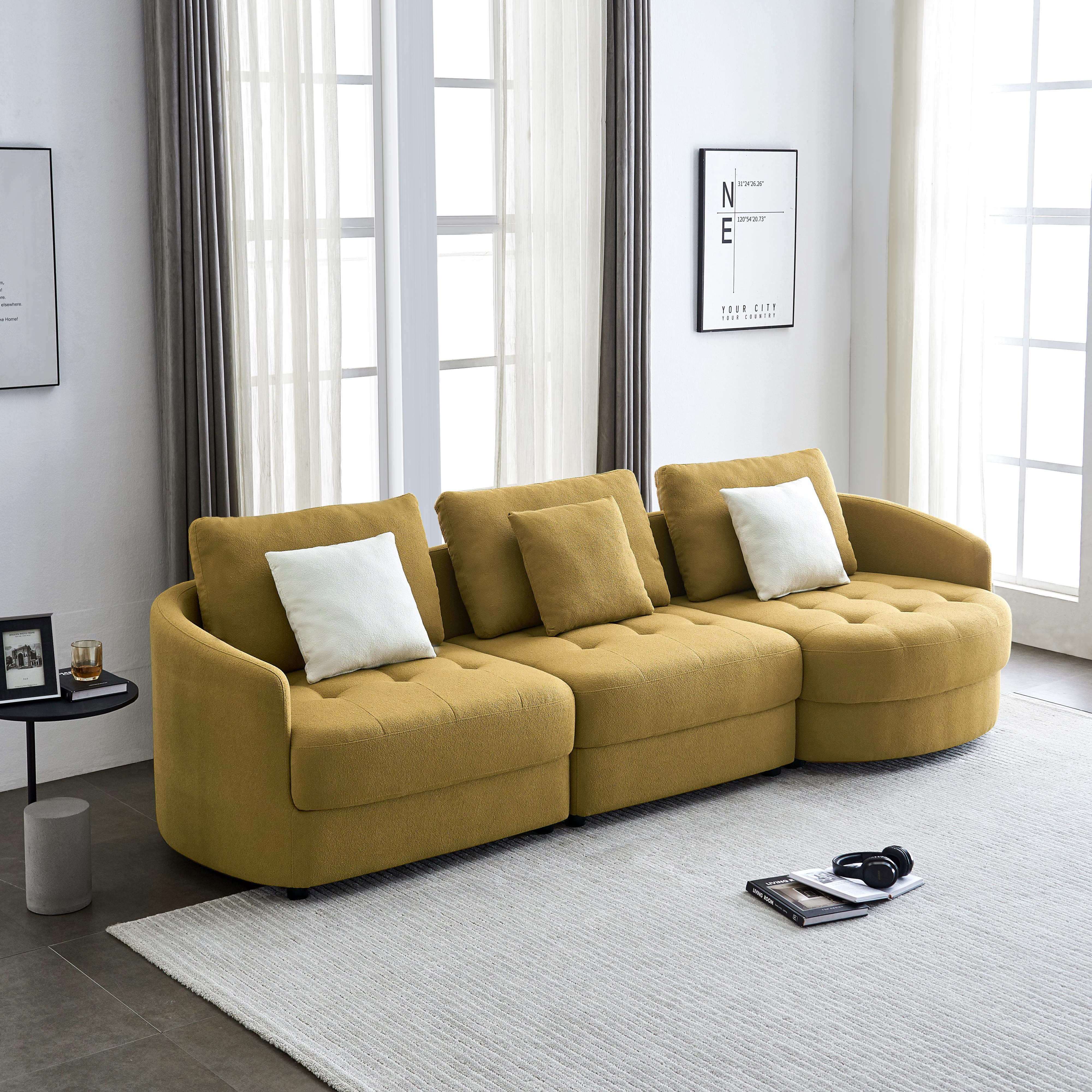Youdao Upholstered Tufted 3 Seater Sofa Sectional Sofa Teddy Fabric 3 Seater Couch for Living Room Yellow Right Chaise