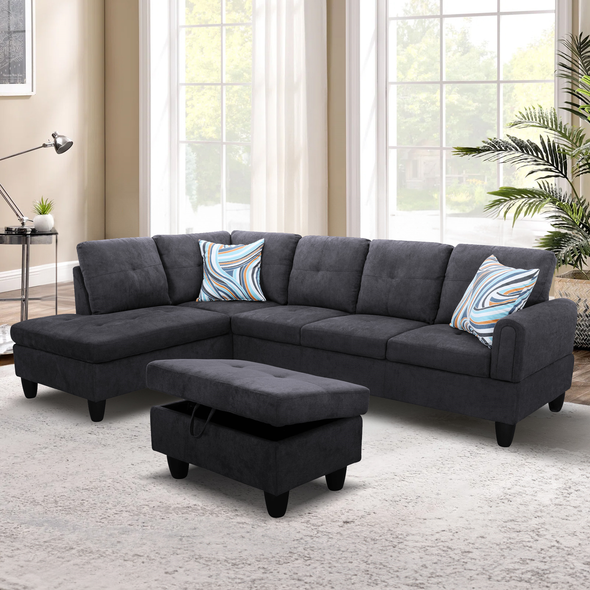 Aukfa 98" Sectional Sofa for Living Room, L Shape Couch with Storage Ottoman, Linen, Dark Gray