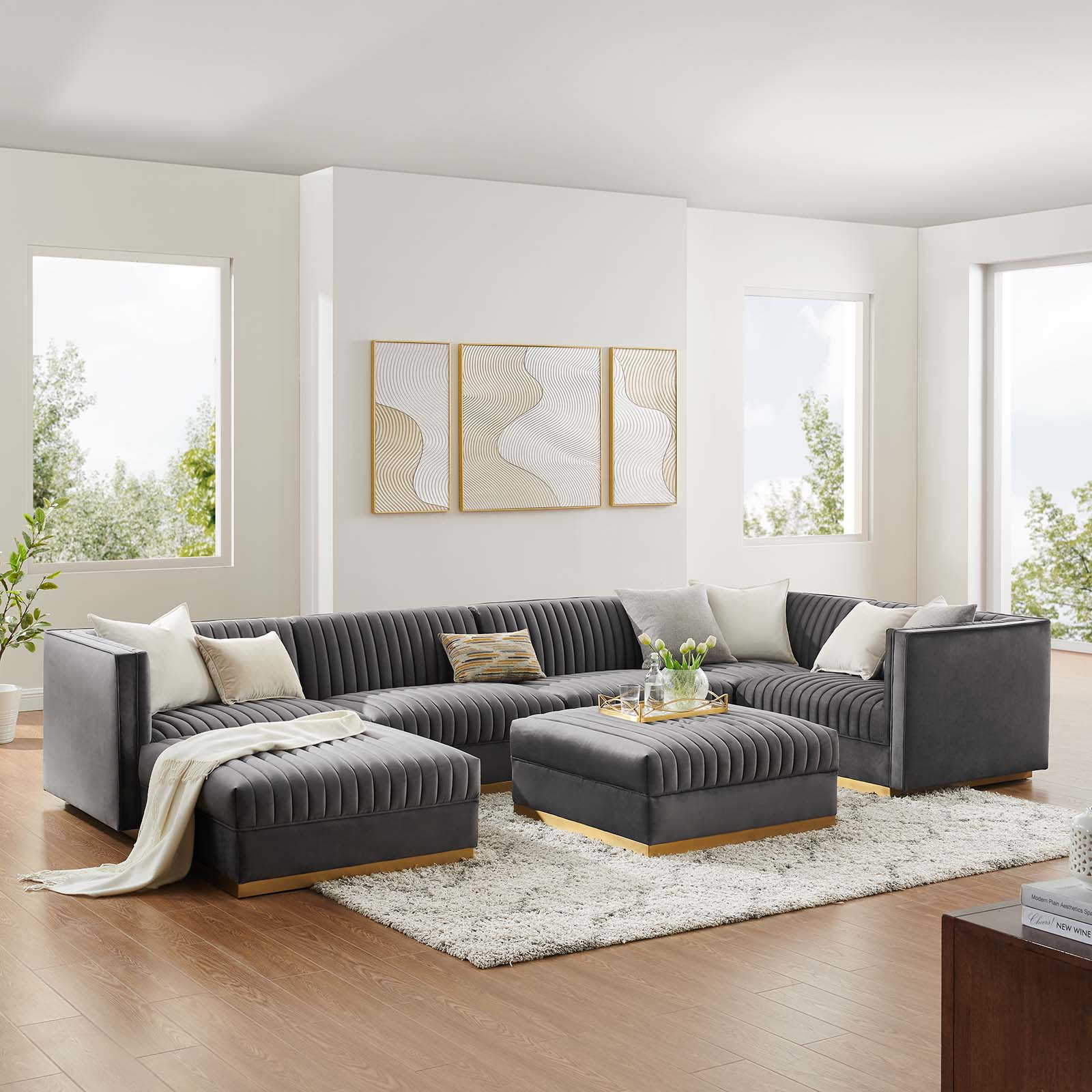 Modway Sanguine Channel Tufted Performance Velvet 7-Piece Right-Facing Modular Sectional Sofa in Gray