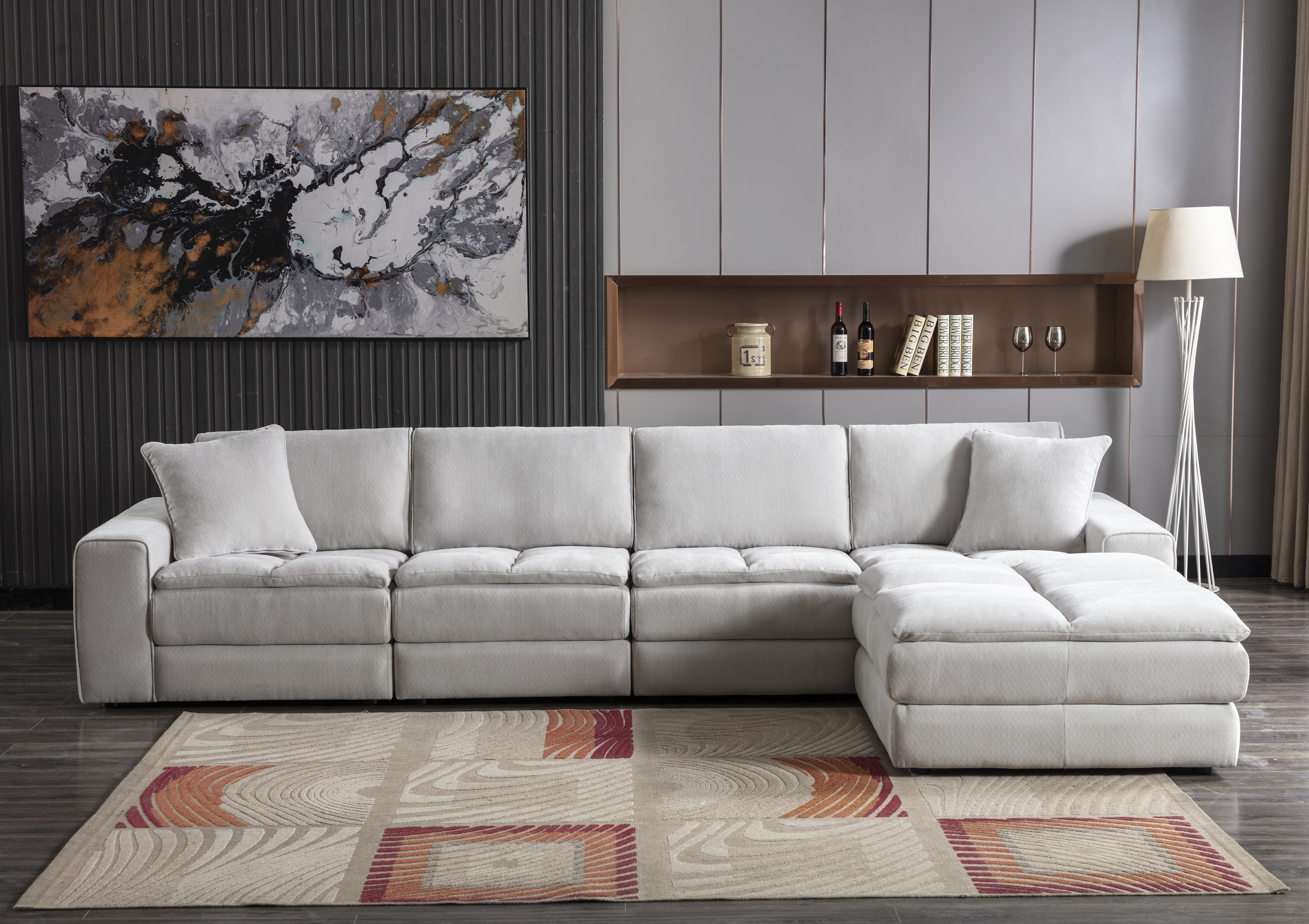 Roundhill Furniture Breton Contemporary 4-Piece Sectional Sofa with Ottoman