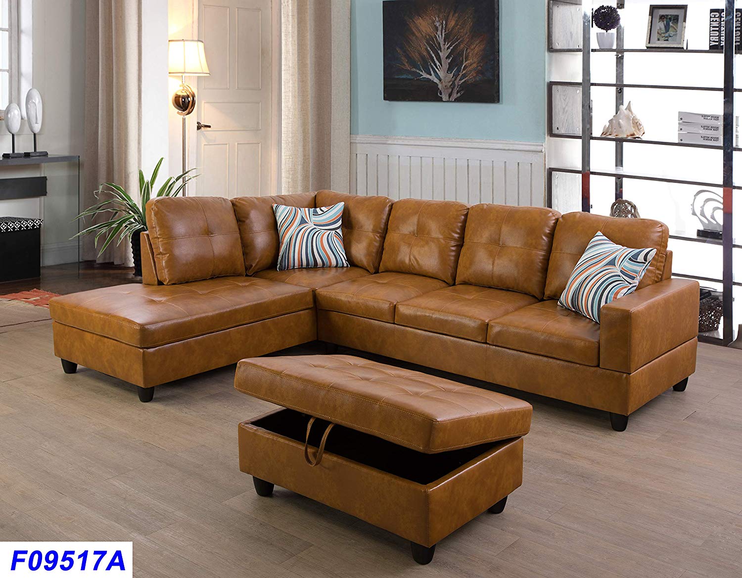 Lifestyle Furniture Left Facing 3PC Sectional Sofa Set,Faux Leather,Ginger