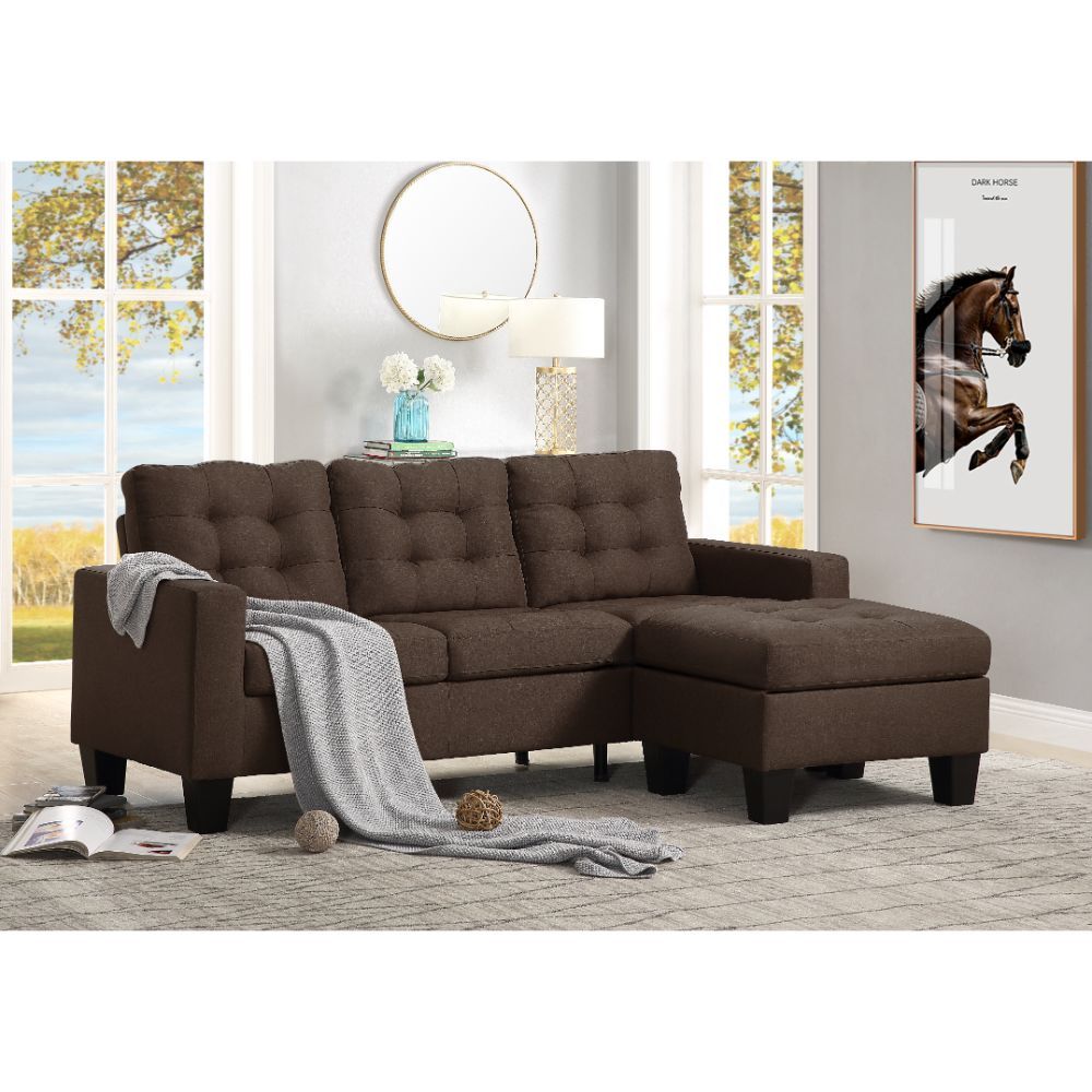 Brown Linen Fabric Transitional Living Room Furniture Reversible Sectional Sofa