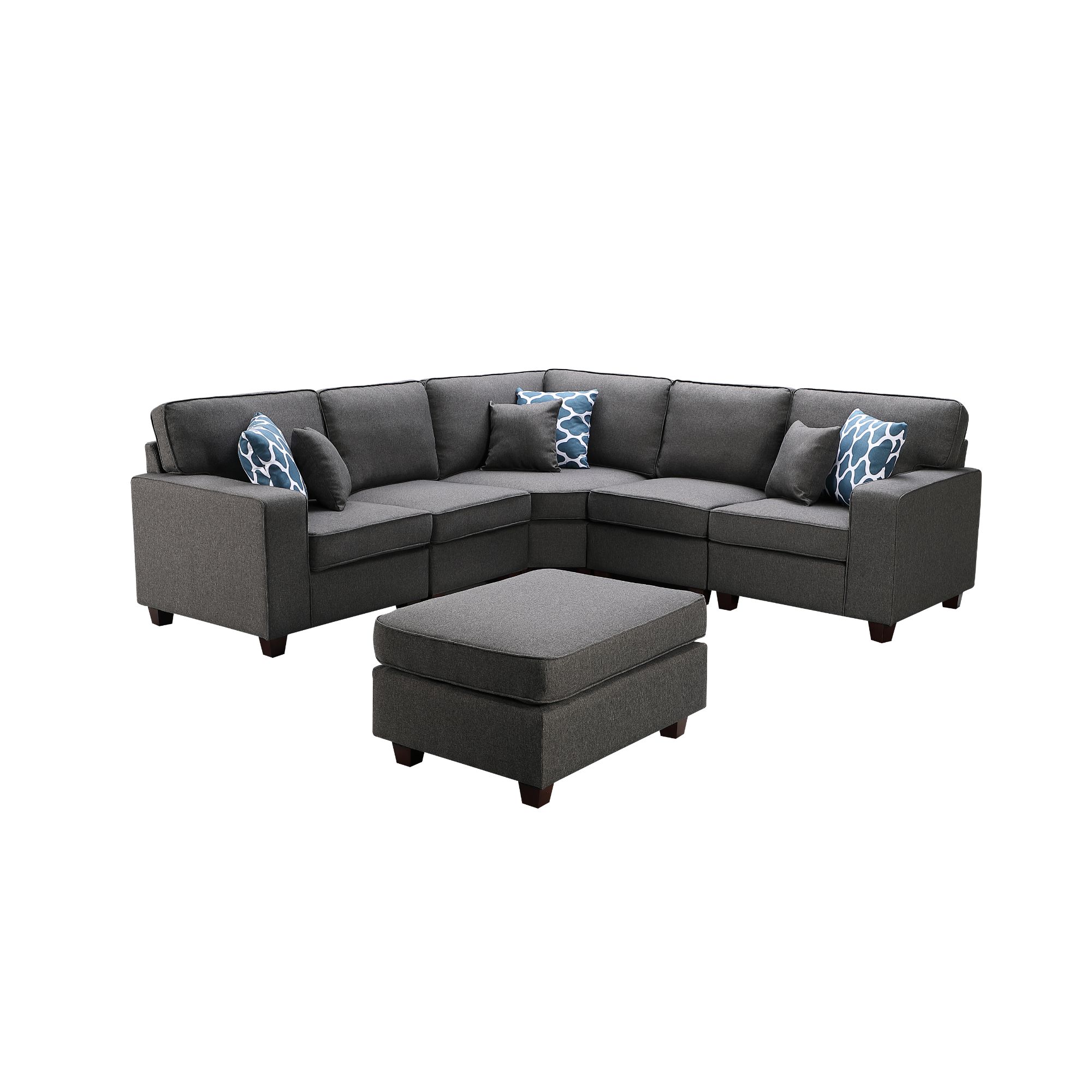 Contemporary Home Living Set of 6 Iron Gray Sonoma Modular Sectional Sofa with Ottoman, 8'