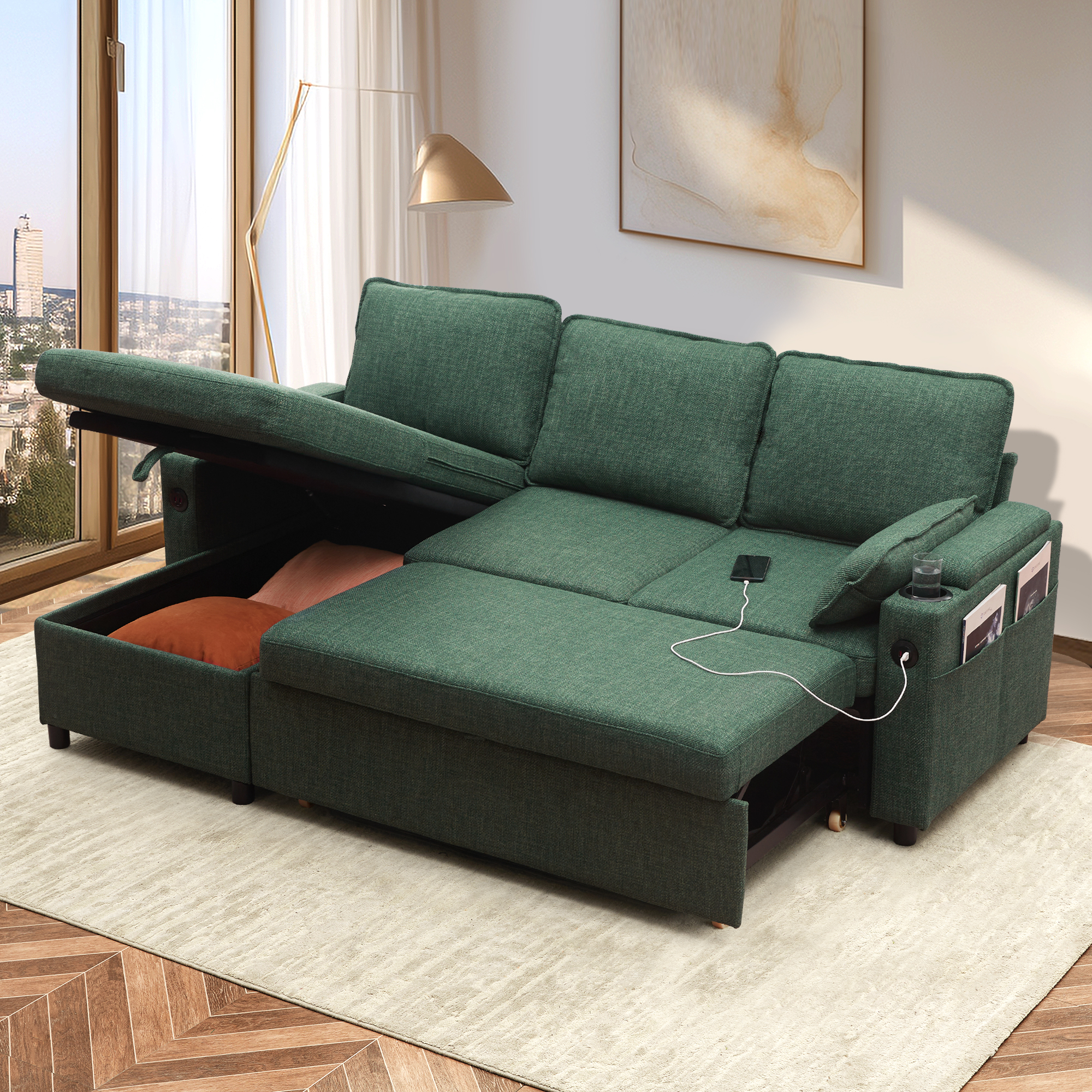 Duraspace Sectional Sleeper Sofa with Storage Chaise, Reversible Pull Out Couch Sofa Bed, L-Shape Green