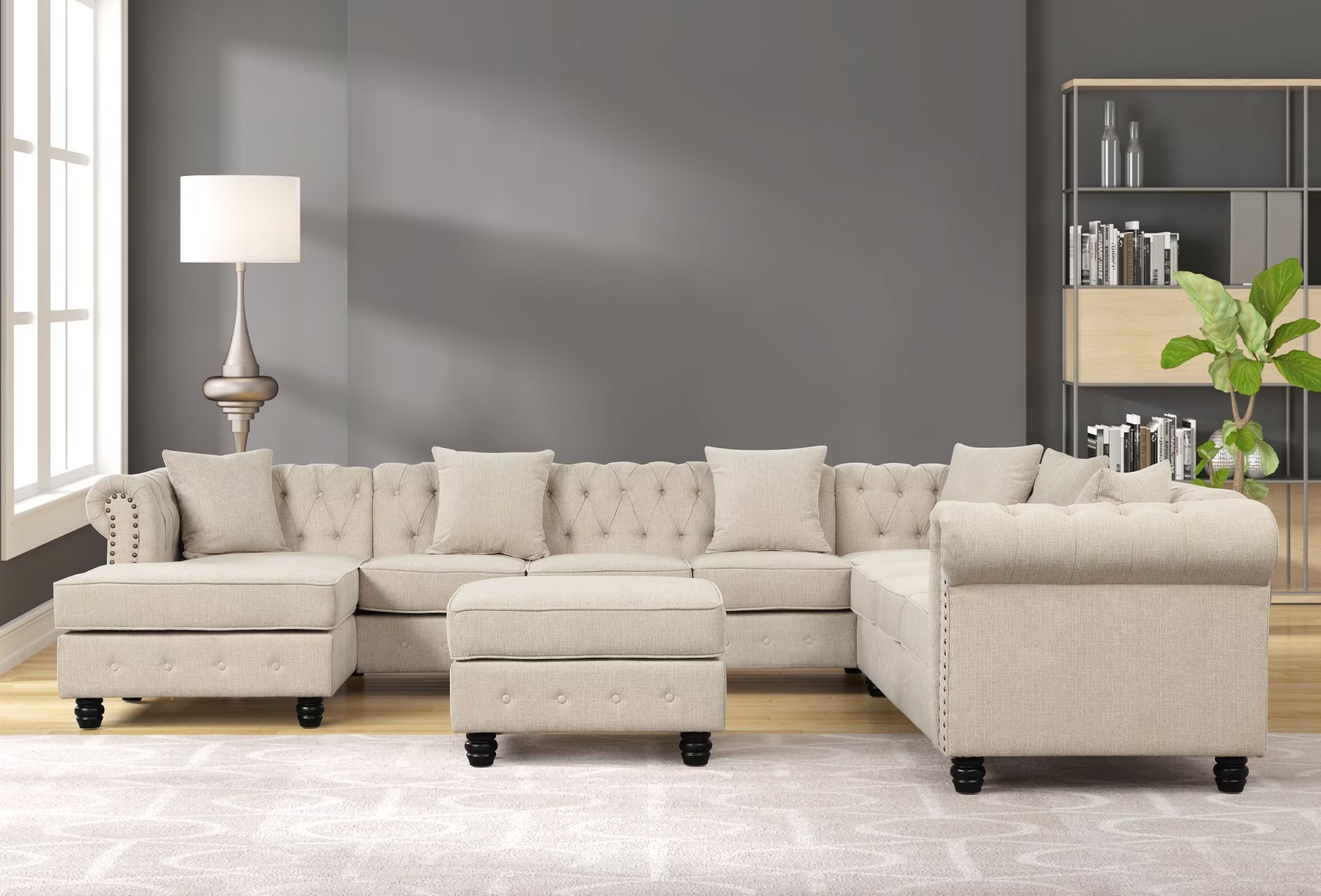 Morden Fort U Shape Modular Oversized Sectional Sofa Bed with Chaise Lounge and Ottman for Living Room Imitation chenille Beige
