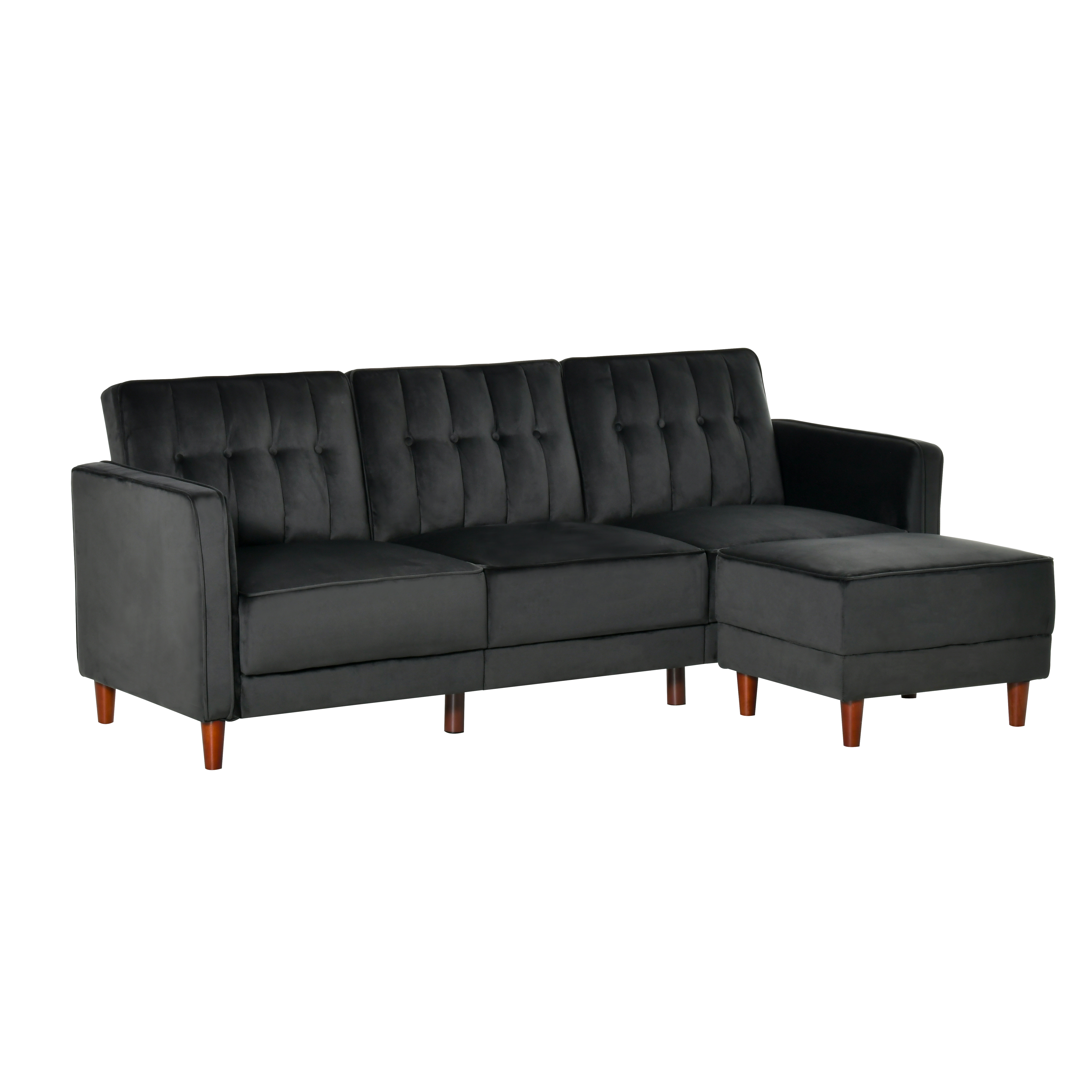 HOMCOM Upholstered L-Shaped Sofa Bed, Reversible Sectional Recliner Sofa Set, Velvet-Touch Sleeper Futon with Footstool, Black