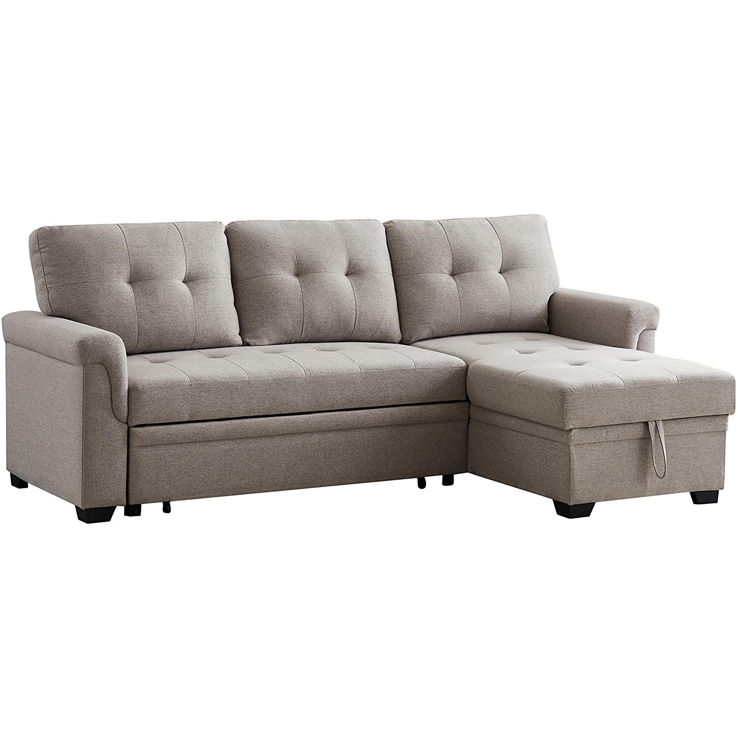 Lucca Light Gray Fabric Reversible Sleeper Sofa Storage Chaise