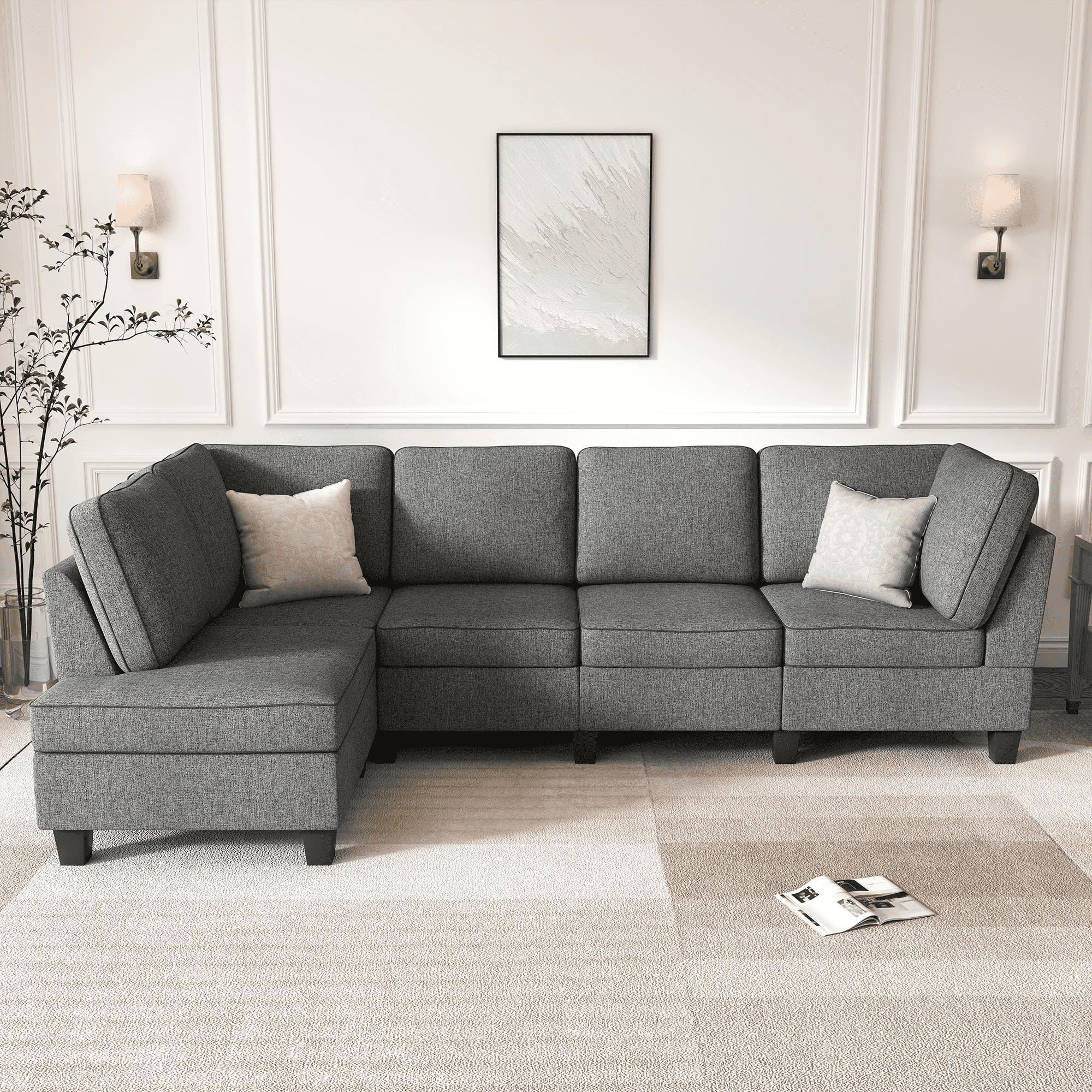 LINSY HOME Modular Couches and Sofas Sectional with Storage Sectional Sofa U Shaped Sectional Couch with Reversible Chaises, Dark Gray