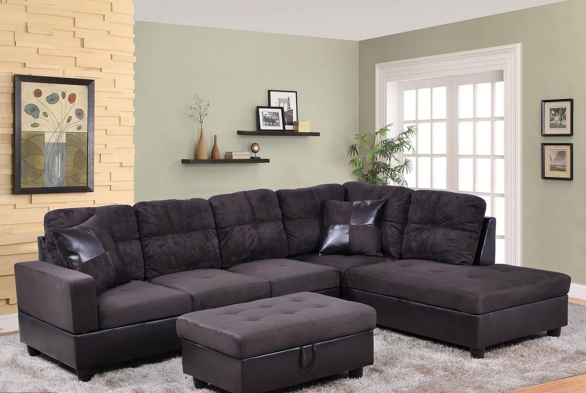 PonLiving Furniture Ezekiel 103.5'' Right Hand Facing Sectional Sofa with Storage Ottoman, Microfiber & Leather Upholstered