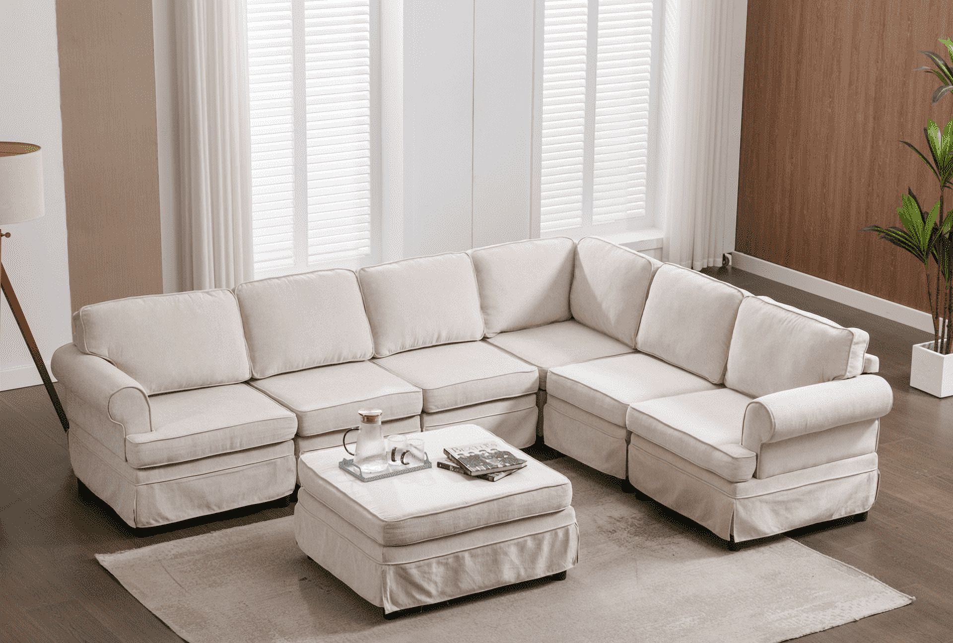 Euroco Fabric Sofa L shaped Upholstered Modular Sofa Collection, Sectional Couch with Removable Ottoman for Living Room, Beige, 108" x 84"