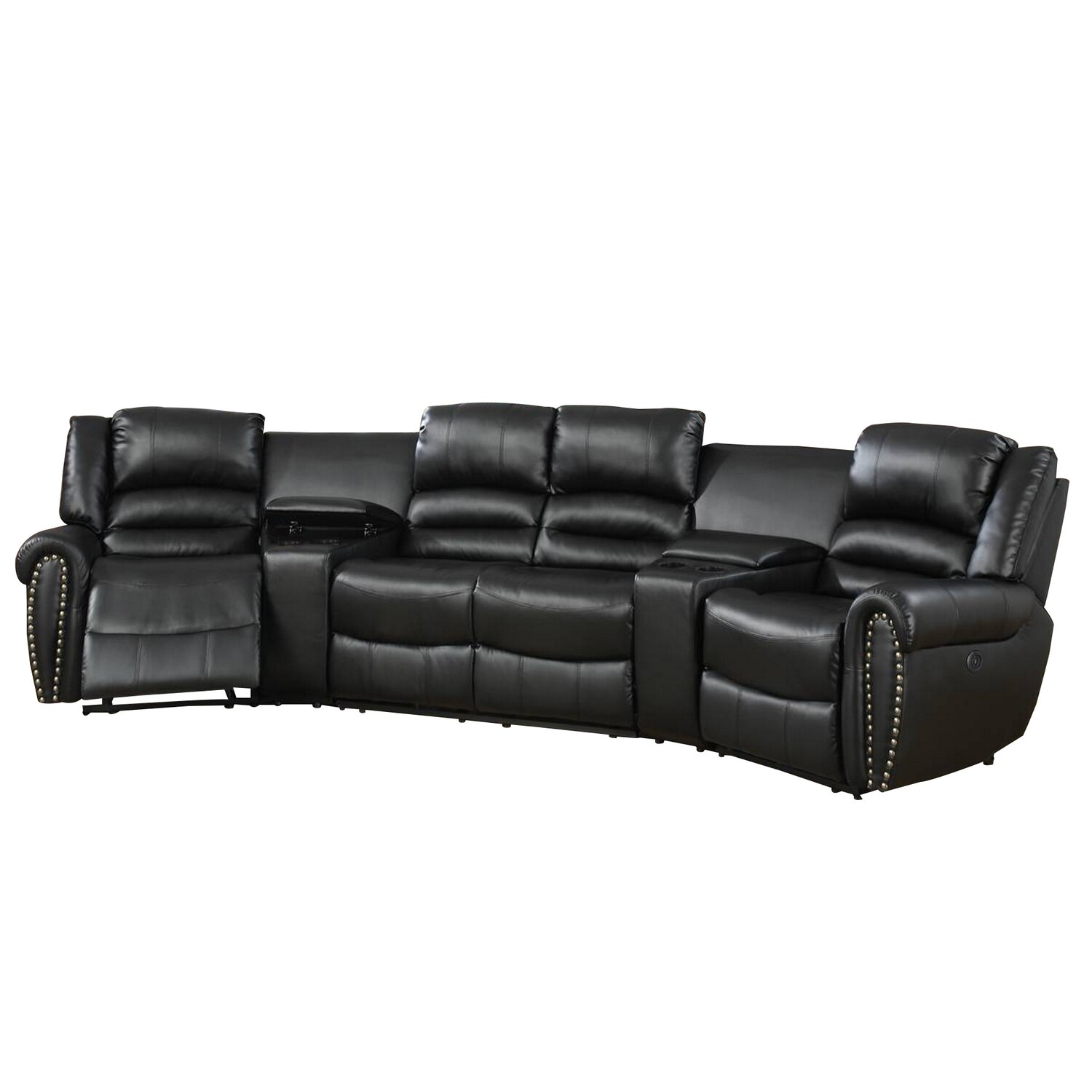 Benjara Zib Power Reclining Sectional Sofa Set, USB Port, Bonded Leather, Jet Black
