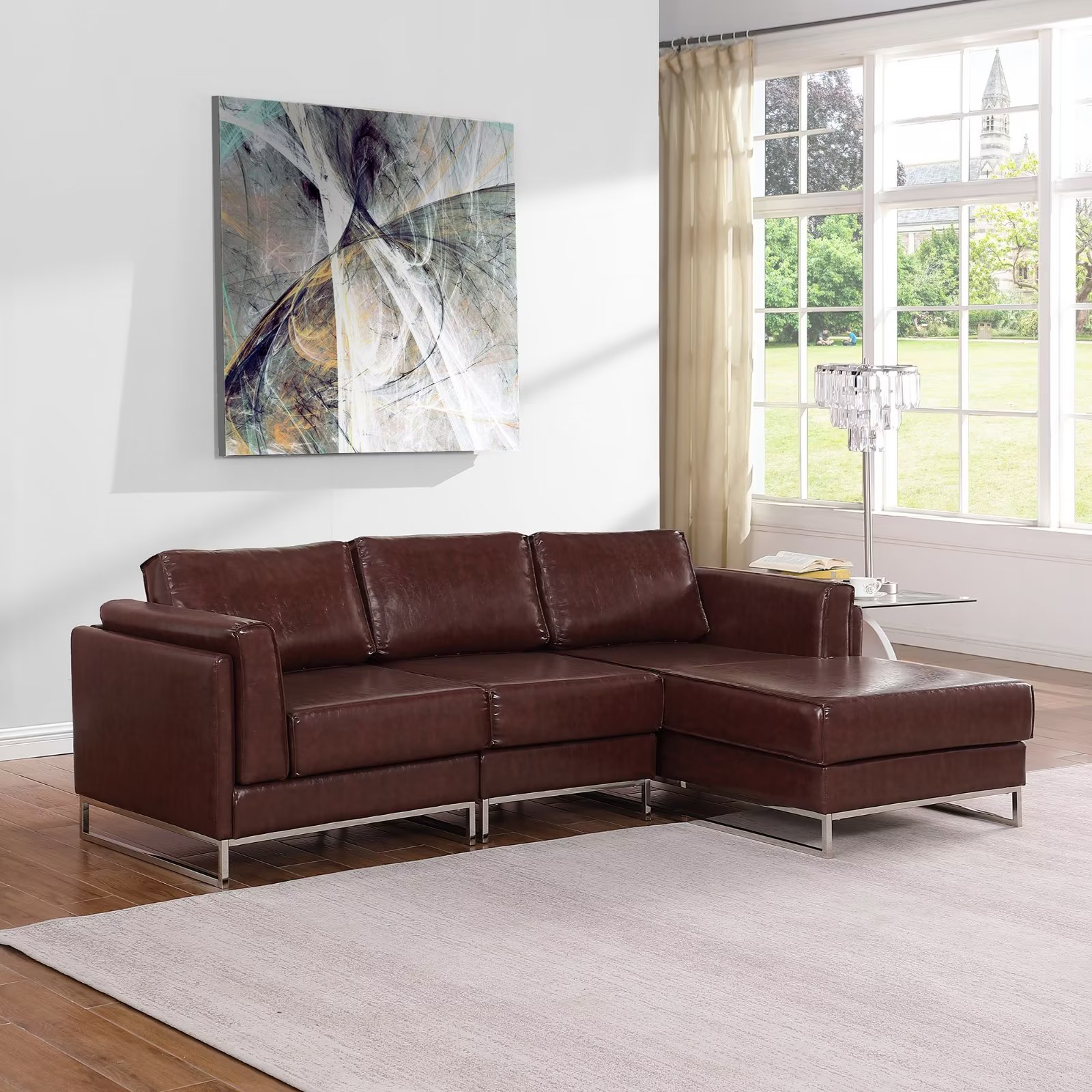 Farati Luxury PU Leather Sectional Sofa with L Shape Chaise 3 Seater Comfy Modular Living Room Couch Office Chocolate Brown