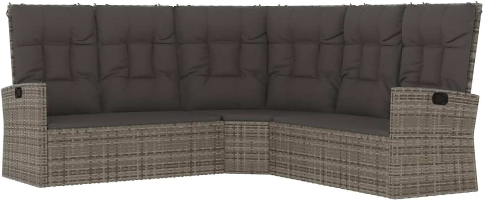 vidaXL Outdoor Reclining Corner Sofa with Thick Padded Cushions, Weather-Resistant PE Rattan Material, Adjustable Backrest, Easy Assembly, Gray
