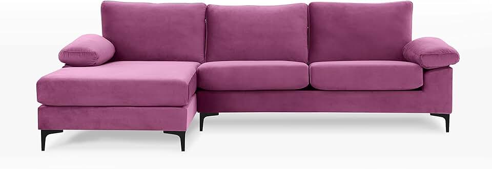 Casa Andrea Modern Modern Sectional Sofa L Shaped Velvet Couch, with Extra Wide Chaise Lounge and Black Legs