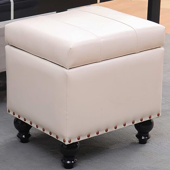 Square Storage Ottoman Leather Footrest with Rivet Decoration,Light Luxury Sofa Low Footstool for Living Room Bedroom,Stackable Padded Seat-L-15.7 * 15.7 * 13.4inch