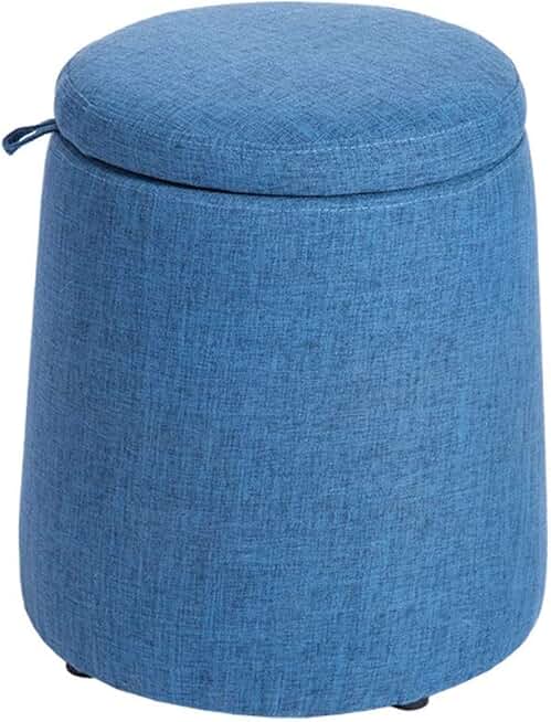 Sofa Stool, Personality, Fashion, Round Feet Stool, Solid Wood Change Shoe Bench Foot Rest Footstool Upholstered Padded Pouf Footrest (Color : Blue)