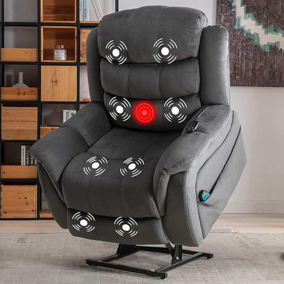 Electric Power Lift Recliner Chair, Massage Adjustable Recliners Chairs for Adults, Fabric Recliner Sofa with Massage and Heat for Living Room