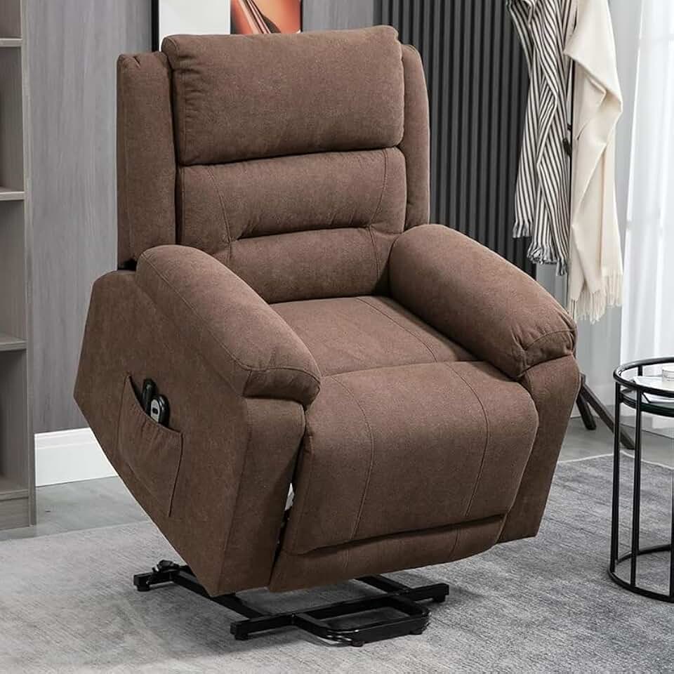 Brown Electric Power Lift Chair for Elderly, Oversized Living Room Bedroom Office Recliner Sofa with 2 Side Pockets, Remote Control Home Theater Reclining Sofa Chairs